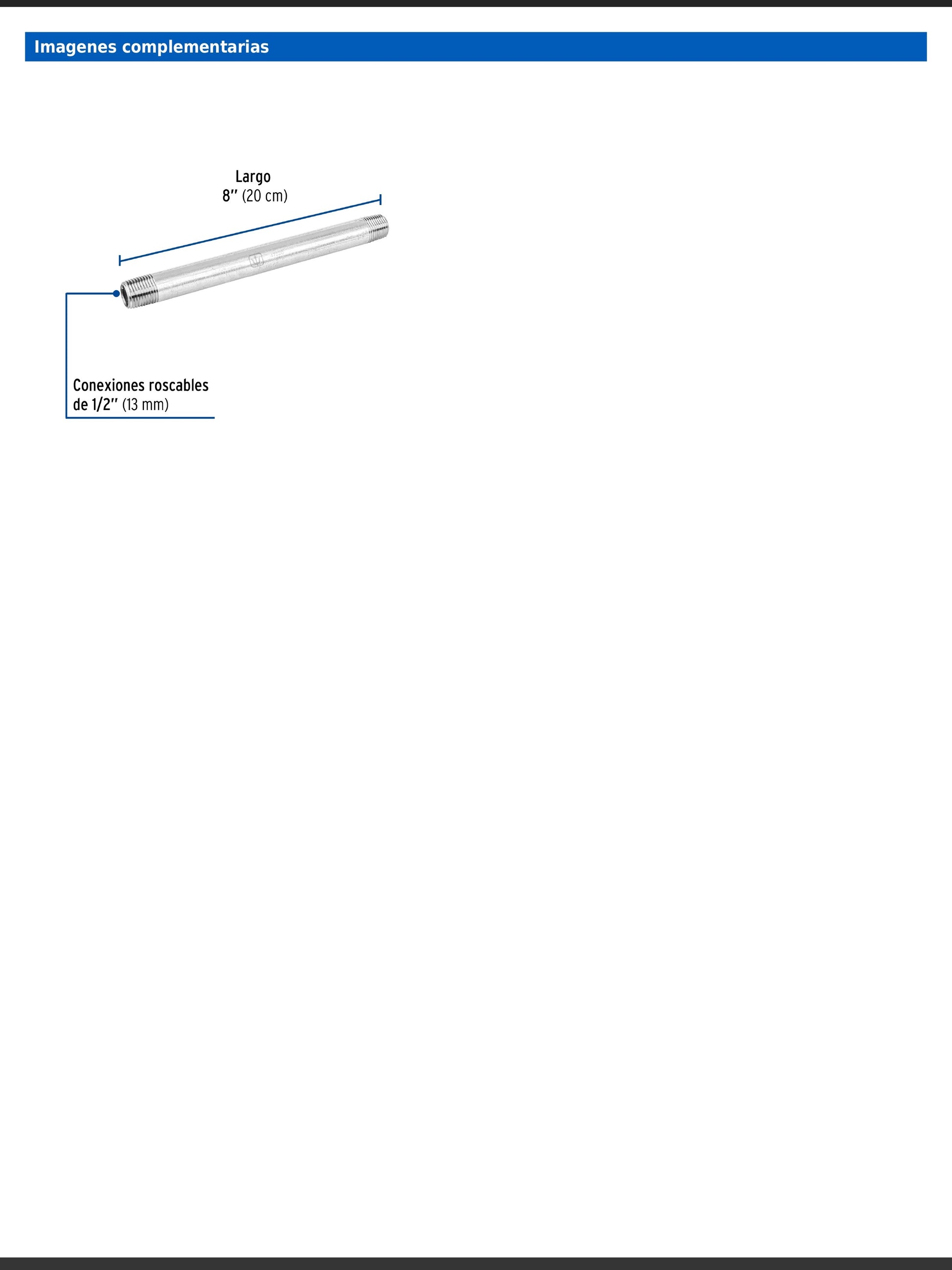 Niple de acero galvanizado de 1/2 pulgada por 8 pulgadas