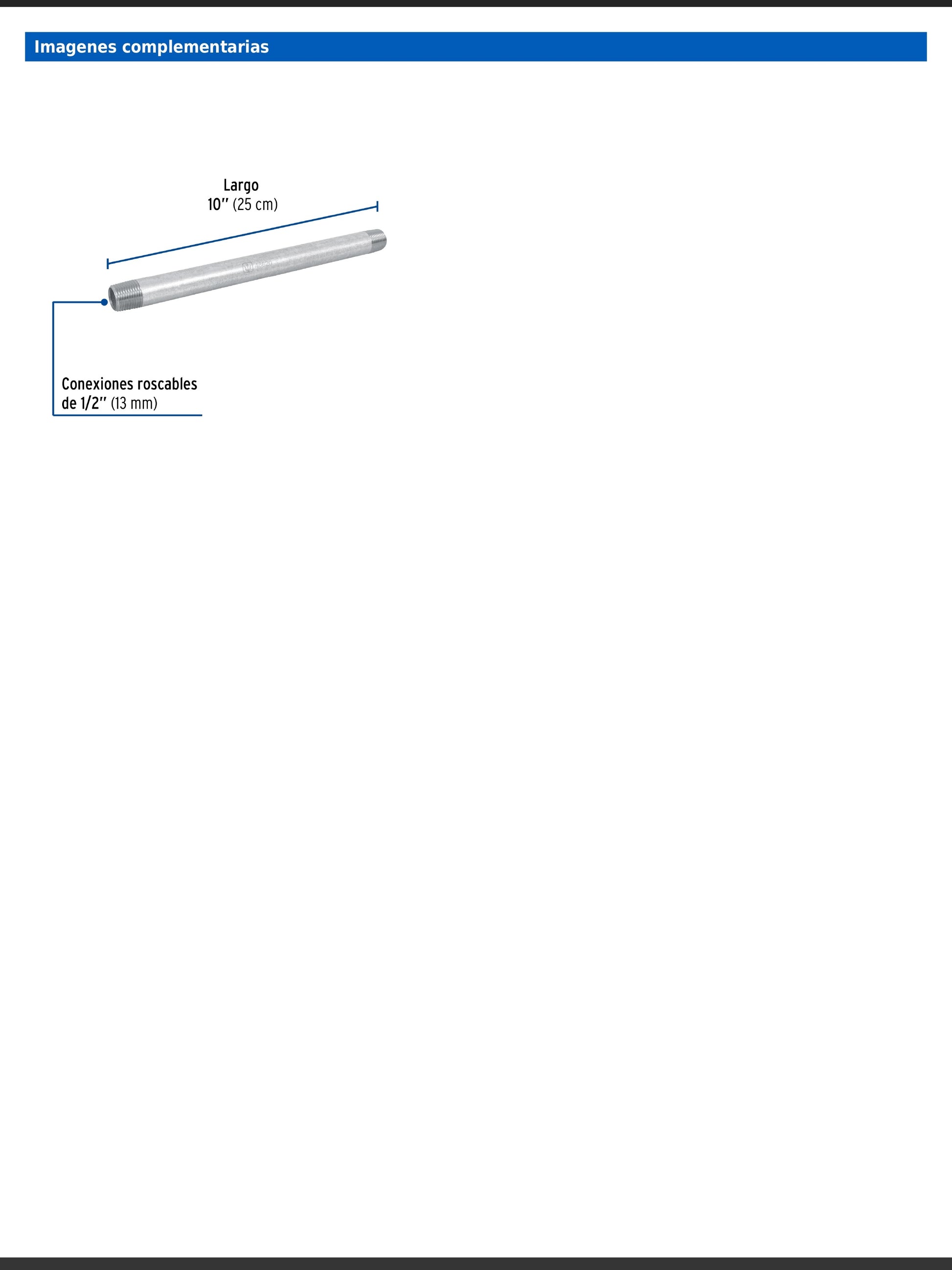 Niple de acero galvanizado de 1/2 pulgada por 10 pulgadas