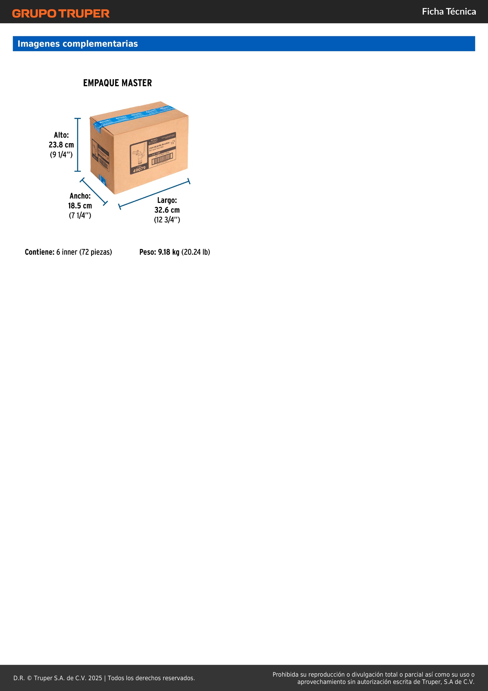 - País de origen Fabricado en China bajo las estrictas especificaciones de Grupo Truper.