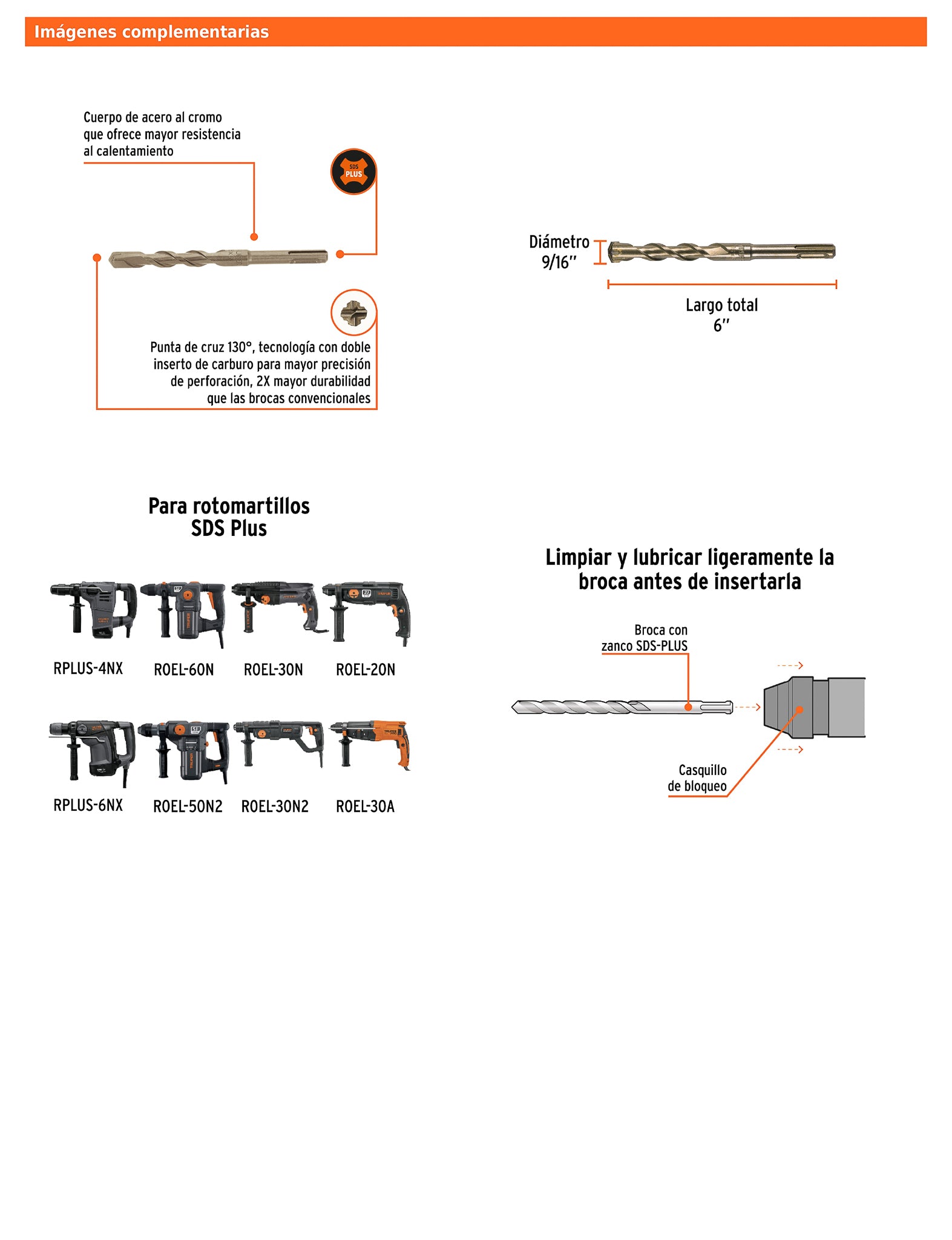 Broca SDS Plus de 9/16 in con largo de 6 in