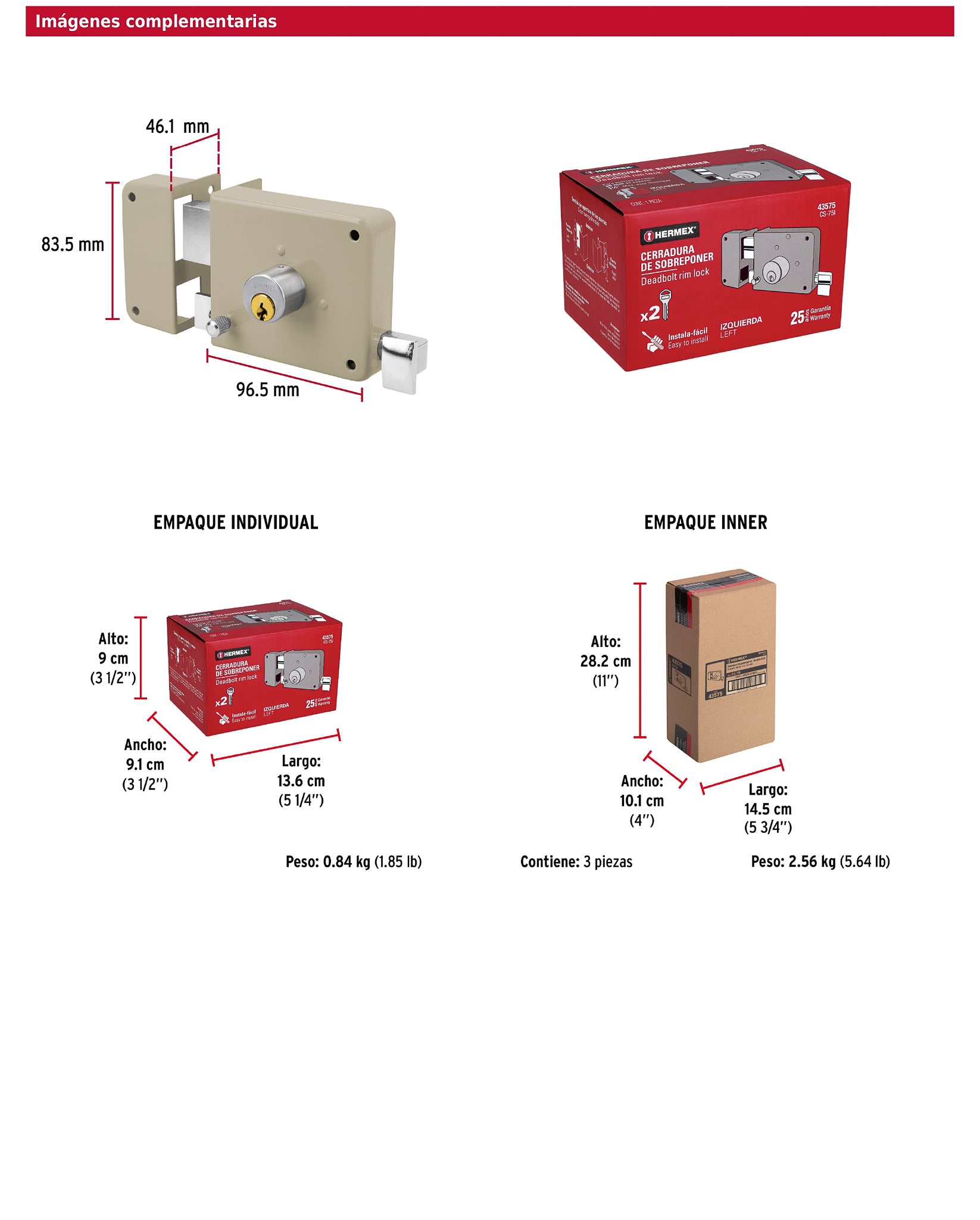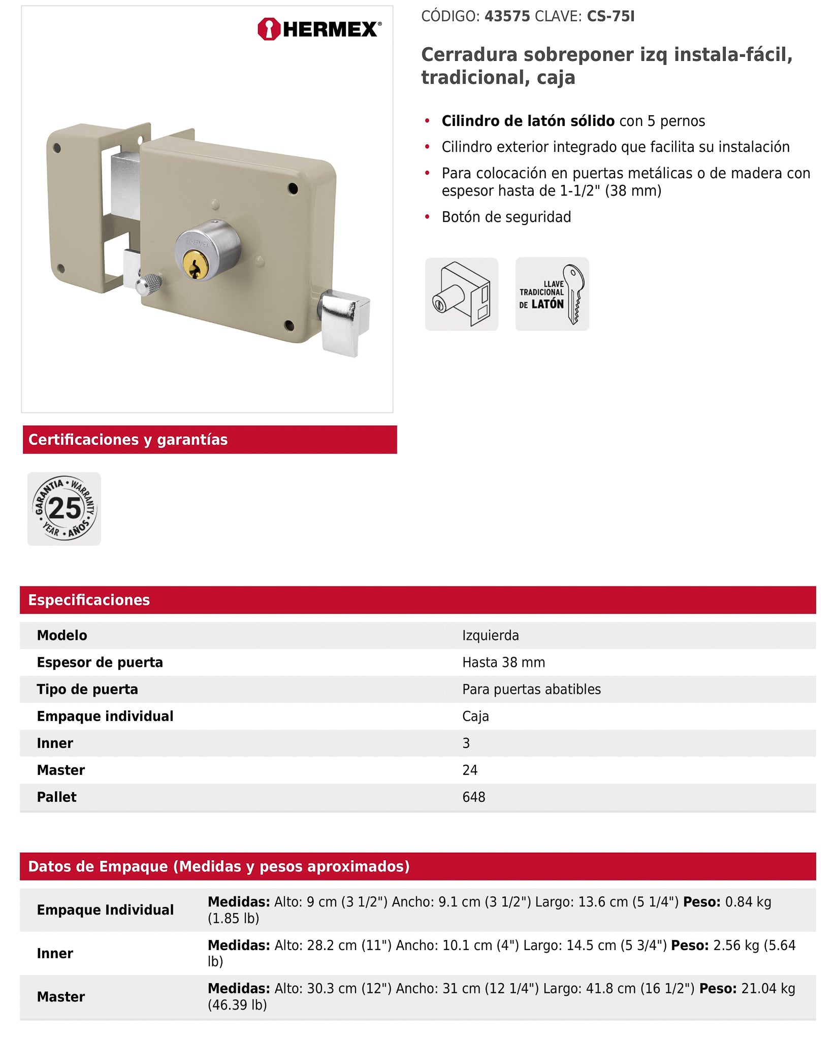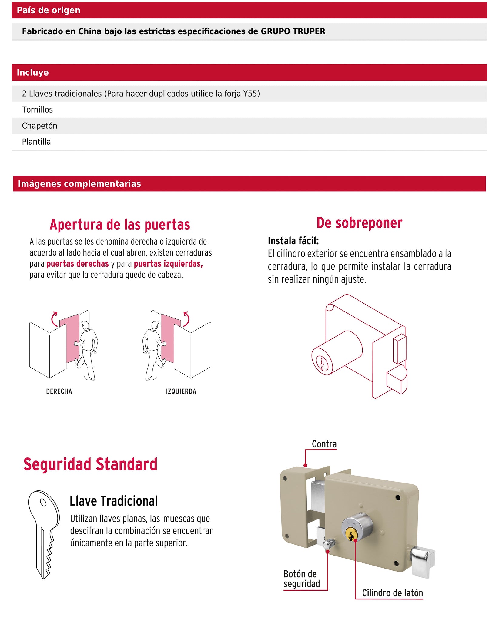 Cerradura sobreponer izquierda instala fácil tradicional caja