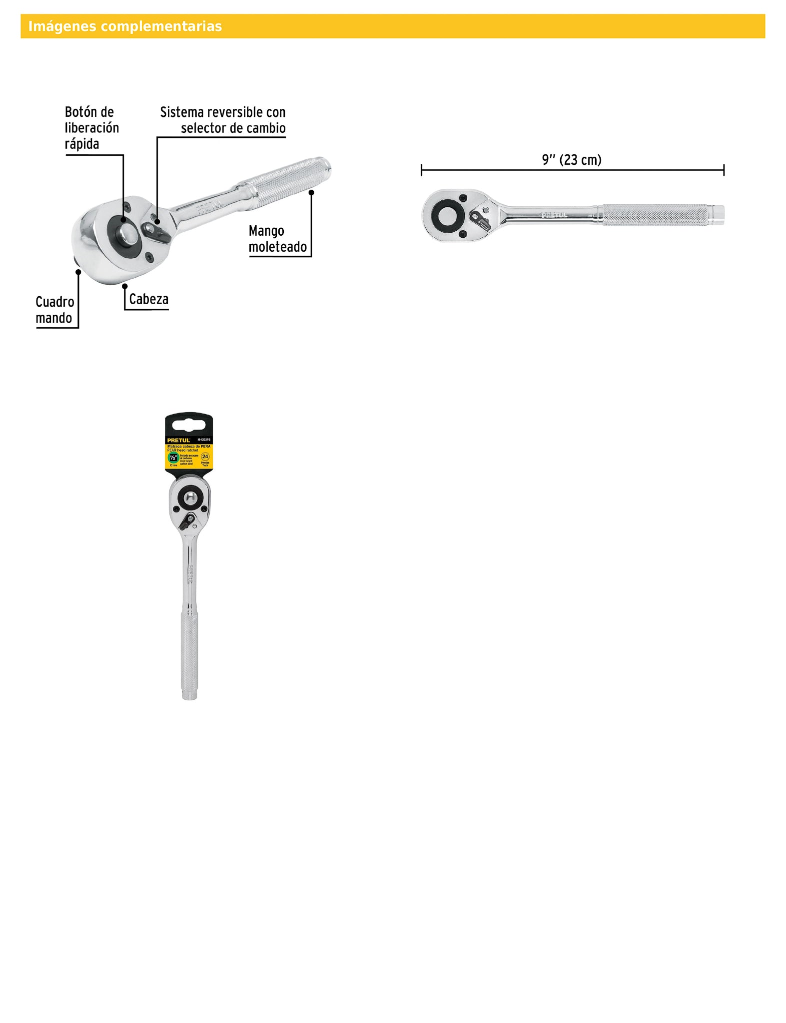 Matraca fabricada en acero al carbono con acabado cromado pulido que resiste la corrosión. Cuenta con mecanismo de 24 dientes, mango moleteado antiderrapante y sistema reversible con selector de giro y botón de liberación rápida para mayor comodidad.