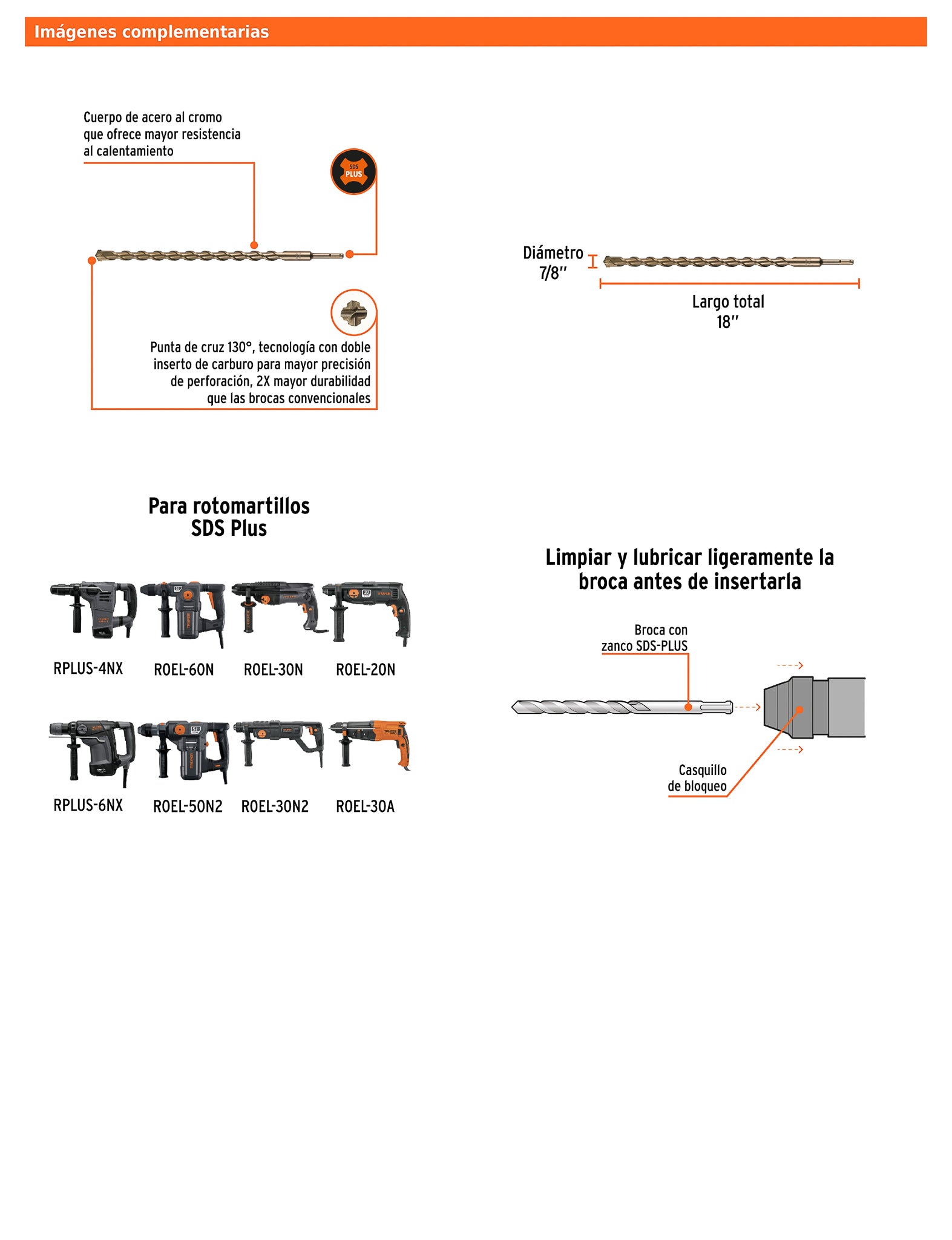 Broca SDS Plus de 7/8 in con largo de 18 in
