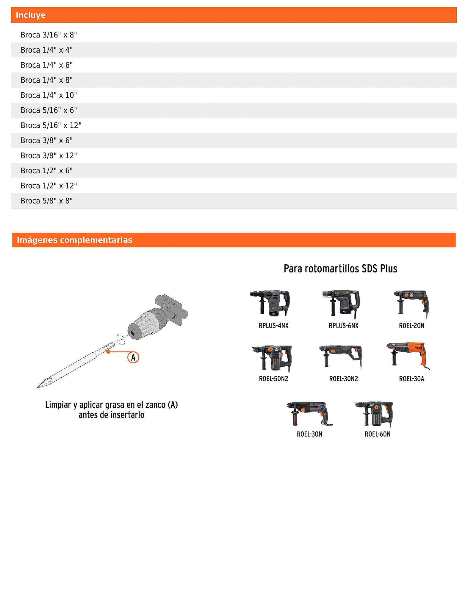 - Tipo de zanco SDS Plus.
