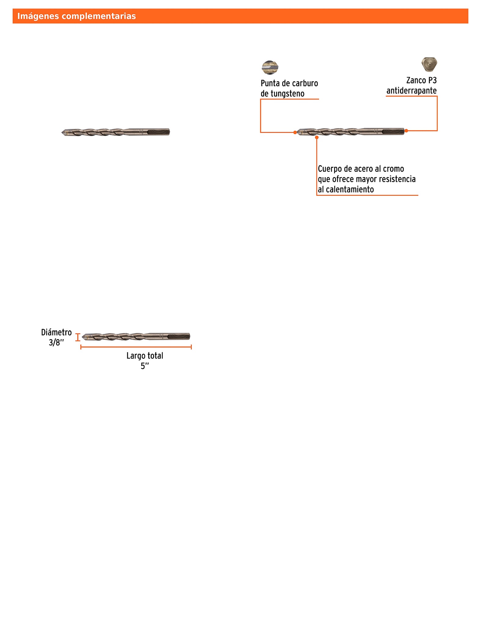 Broca para concreto de 3/8 x 5 in con punta de carburo de tungsteno