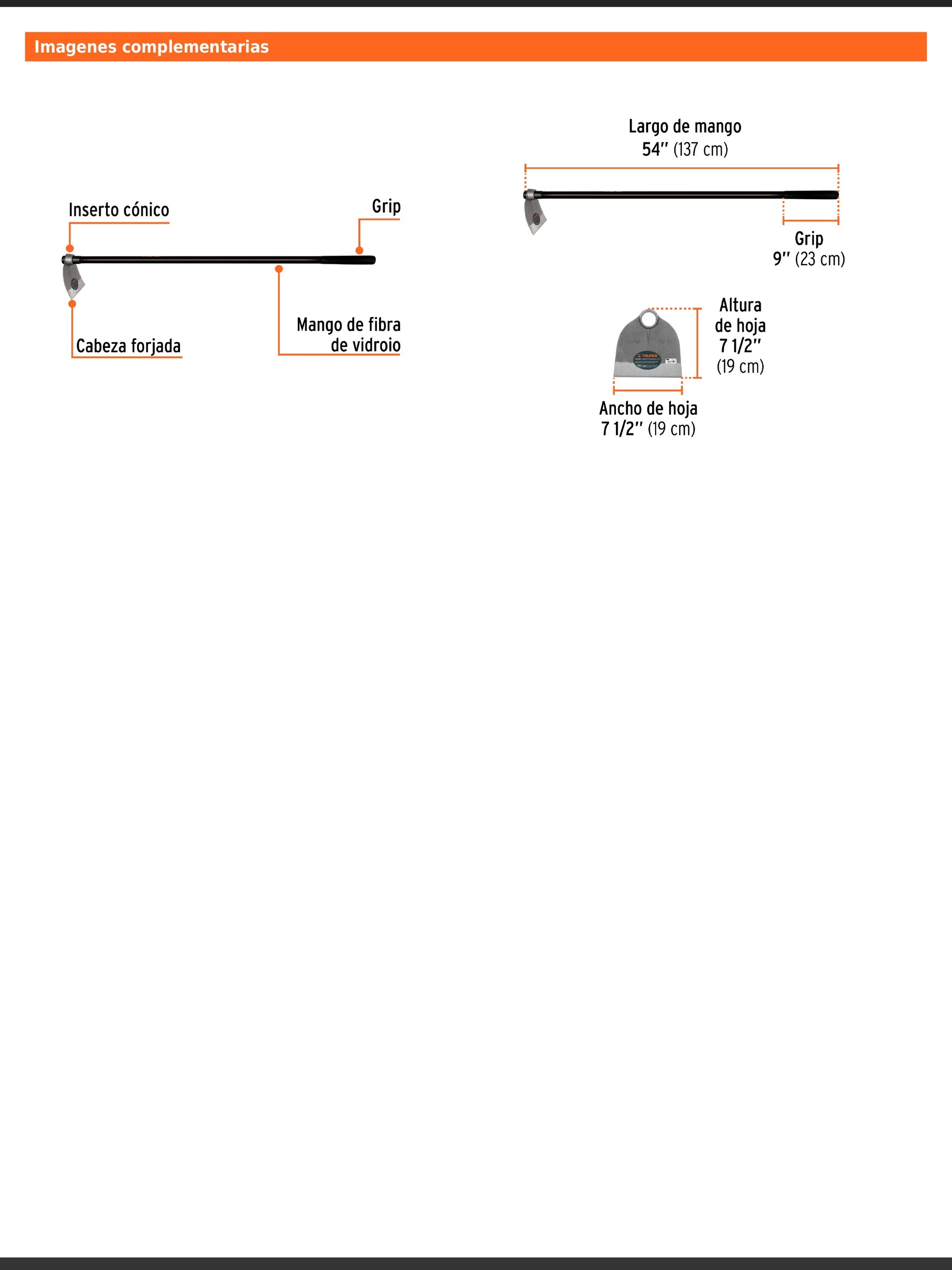 Azadón Lane con cabeza forjada en una sola pieza y nervio central que brinda mayor resistencia al impacto y disminuye la vibración. Presenta acabado pulido y preafilado, con mango de fibra de vidrio más resistente que la madera, diseñado con inserto cónico para acople preciso y mayor seguridad. Ideal para aflojar y preparar el terreno para la siembra. De uso agrícola y hortícola, cuenta con garantía contra defectos de fabricación o mano de obra con cualquier distribuidor autorizado.