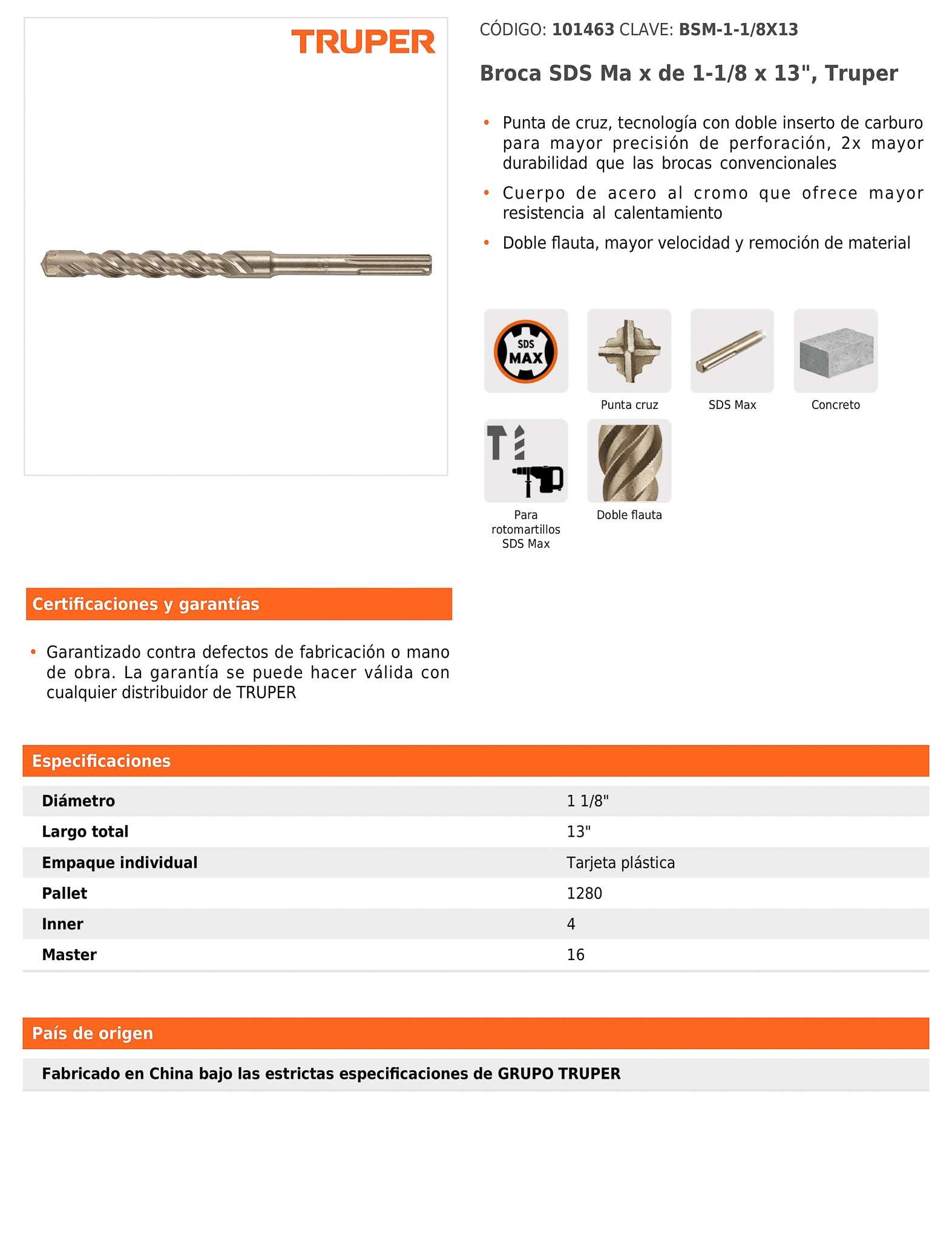 - Fabricado en China bajo las especificaciones de Grupo Truper.