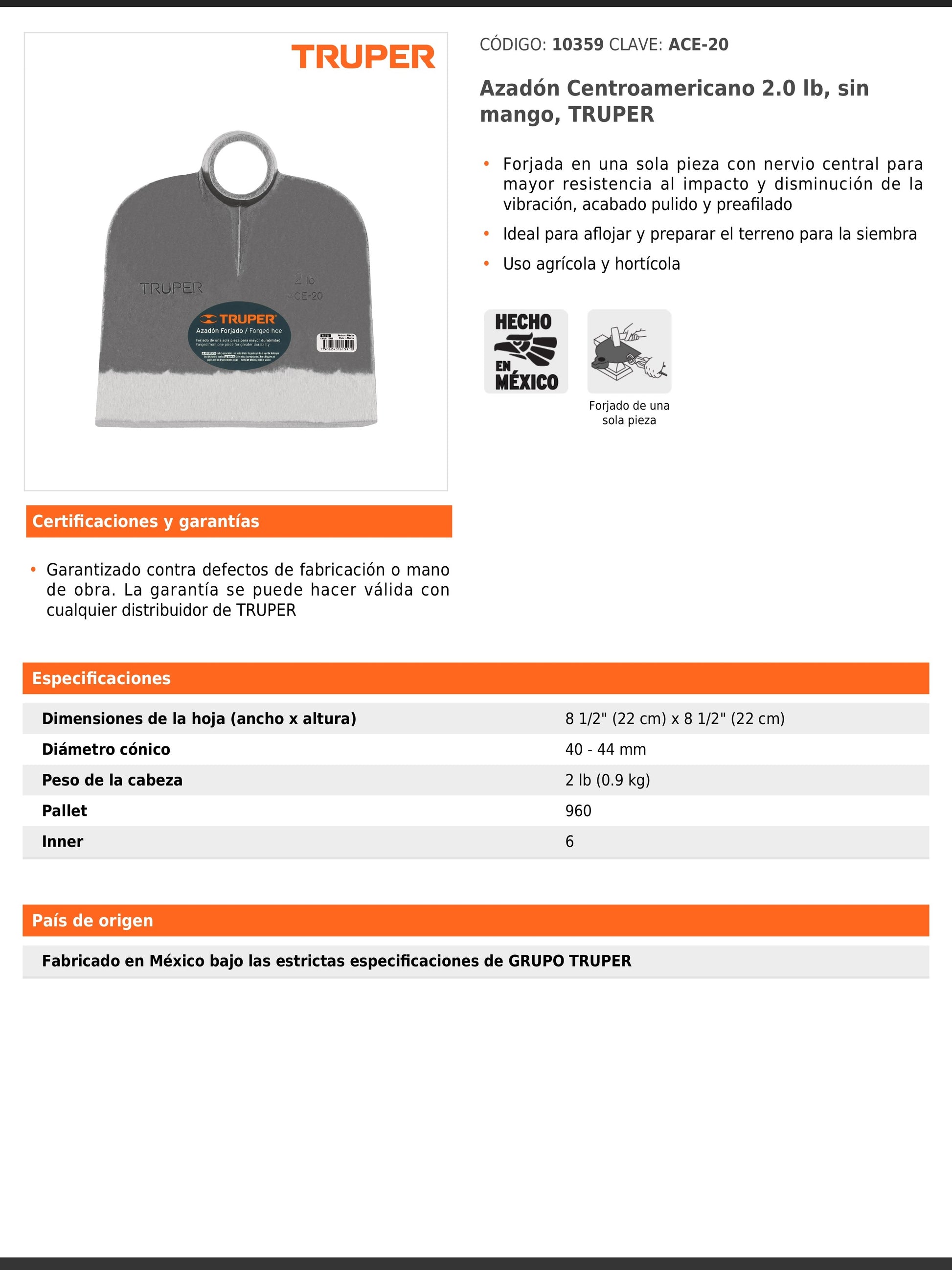 - País de origen: Fabricado en México bajo las estrictas especificaciones de Grupo Truper.