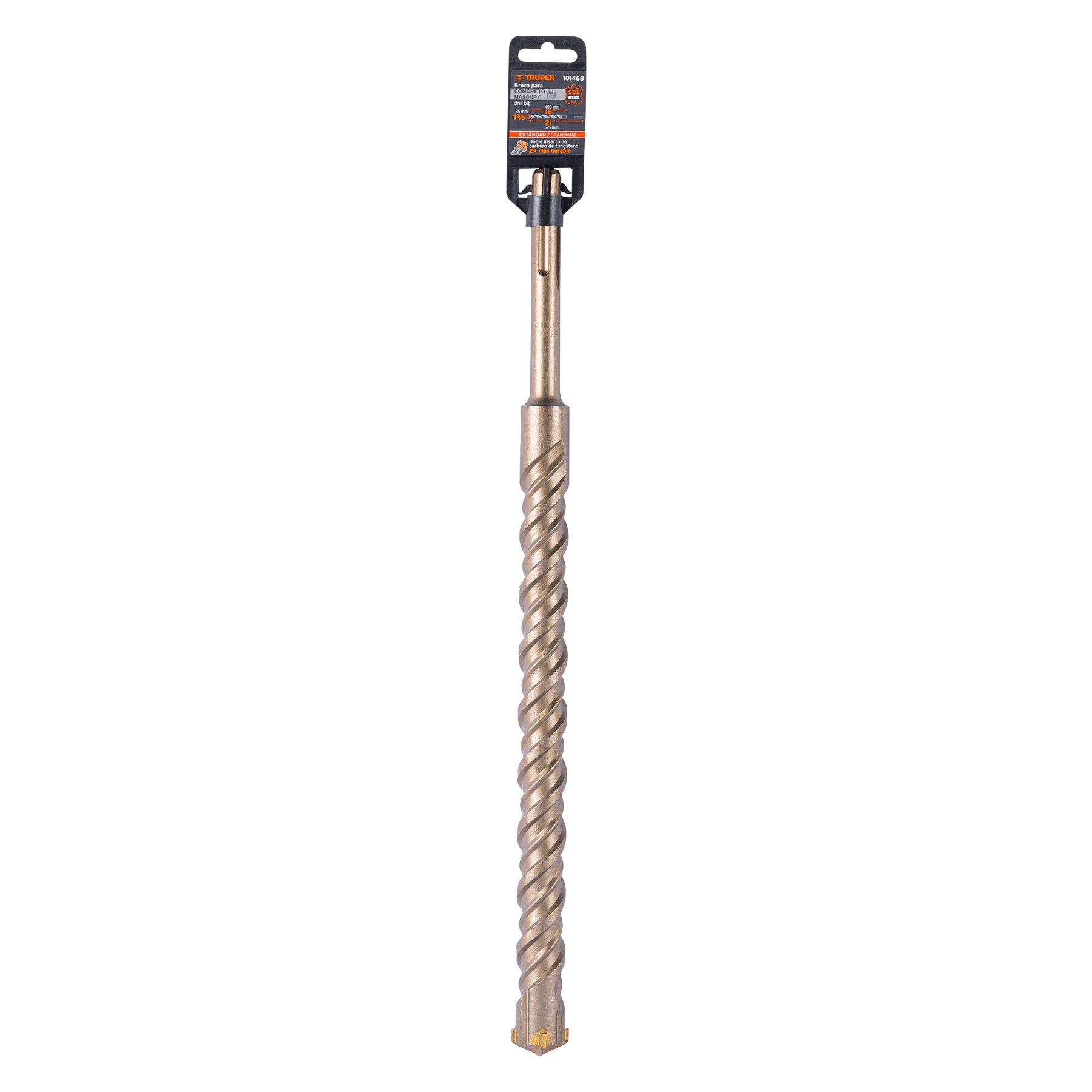 Broca SDS max de 1-3/8" x 21" equipada con punta de cruz y doble inserto de carburo que ofrece mayor precisión en perforaciones profundas y el doble de durabilidad frente a las brocas convencionales. Su cuerpo de acero al cromo resiste altas temperaturas y su diseño de doble flauta optimiza la velocidad y la expulsión del material, ideal para perforar concreto con rotomartillos SDS max.