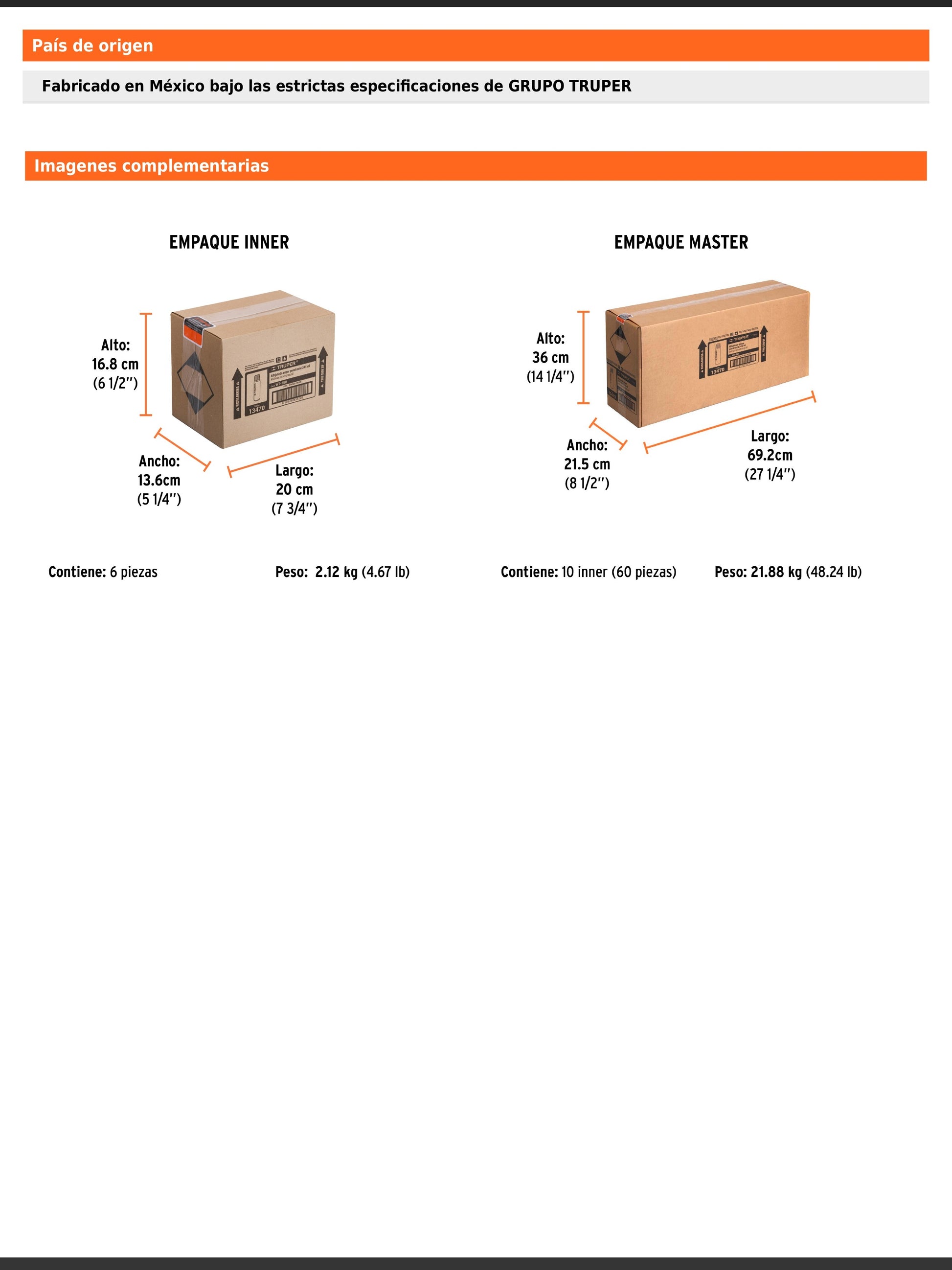 - País de origen: Fabricado en México bajo las estrictas especificaciones de Grupo Truper.