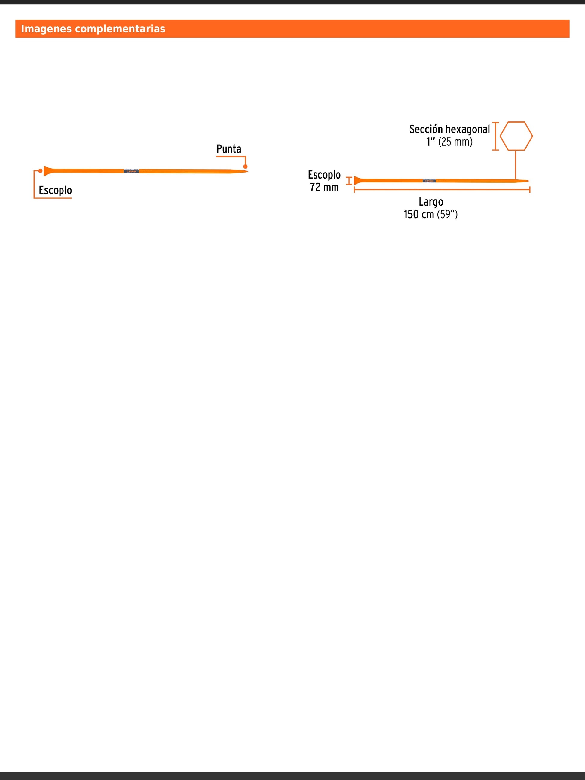 Barreta de punta fabricada en acero con doble tratamiento térmico, diseñada para perforar superficies duras de tierra, piedra o concreto, así como para demoler, romper o cortar raíces de árboles. Está garantizada contra defectos de fabricación o mano de obra con cualquier distribuidor autorizado.