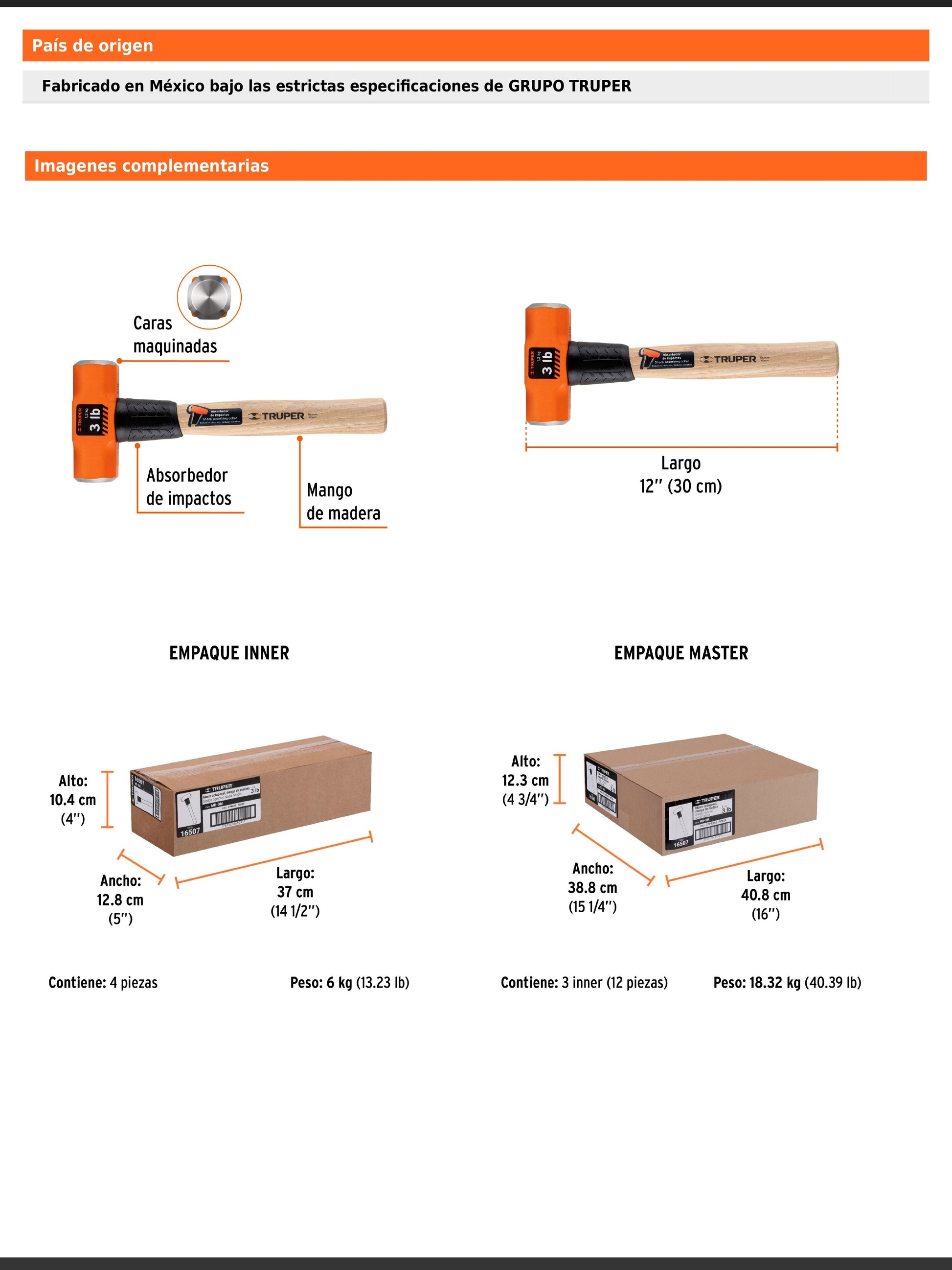 - Fabricado en México bajo especificaciones de Grupo Truper.