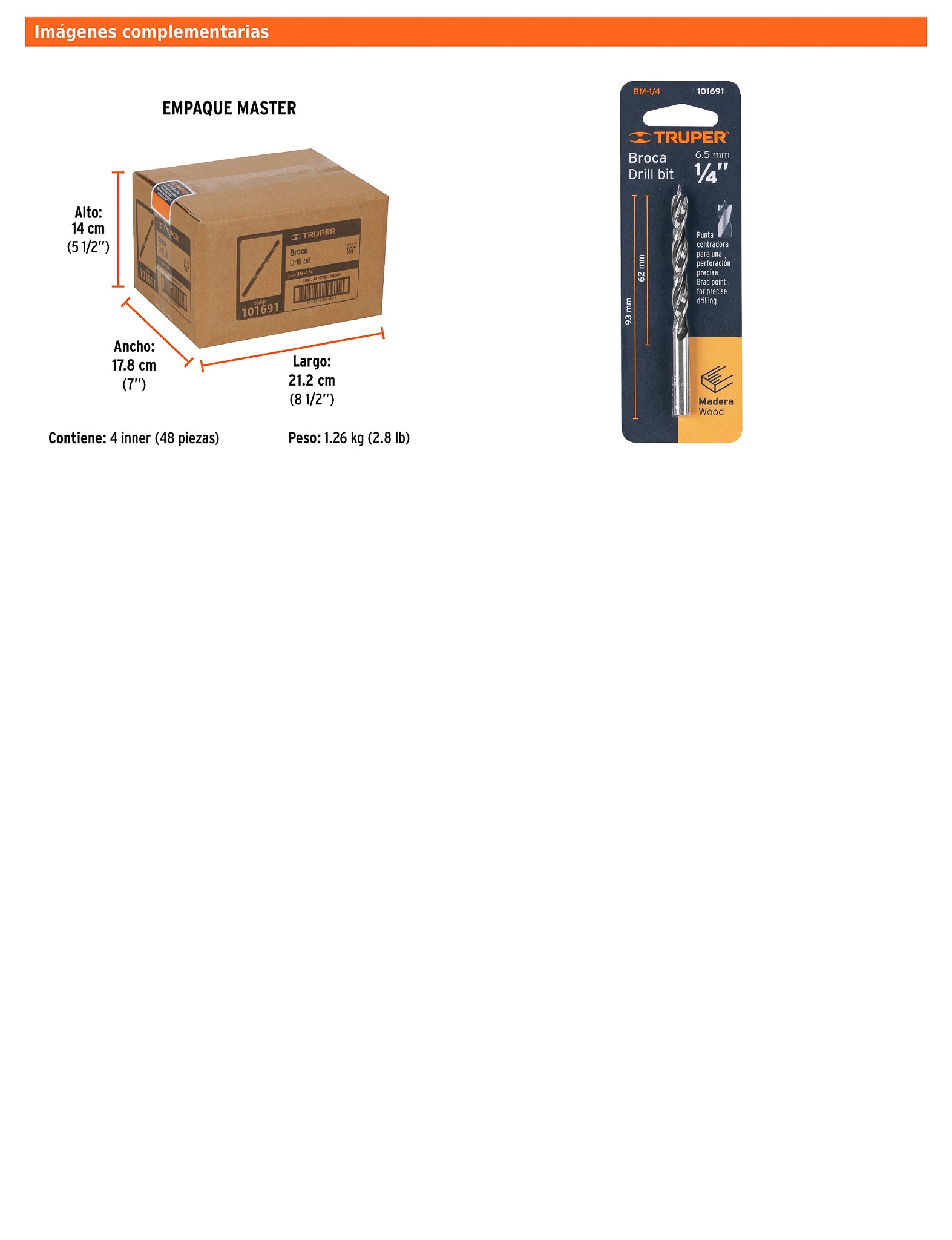 Broca de 1/4" con punta centradora que ofrece una perforación precisa y limpia en madera. Su cuerpo con acabado pulido brinda una mayor durabilidad y mejor desempeño, ideal para trabajos de carpintería y bricolaje.
