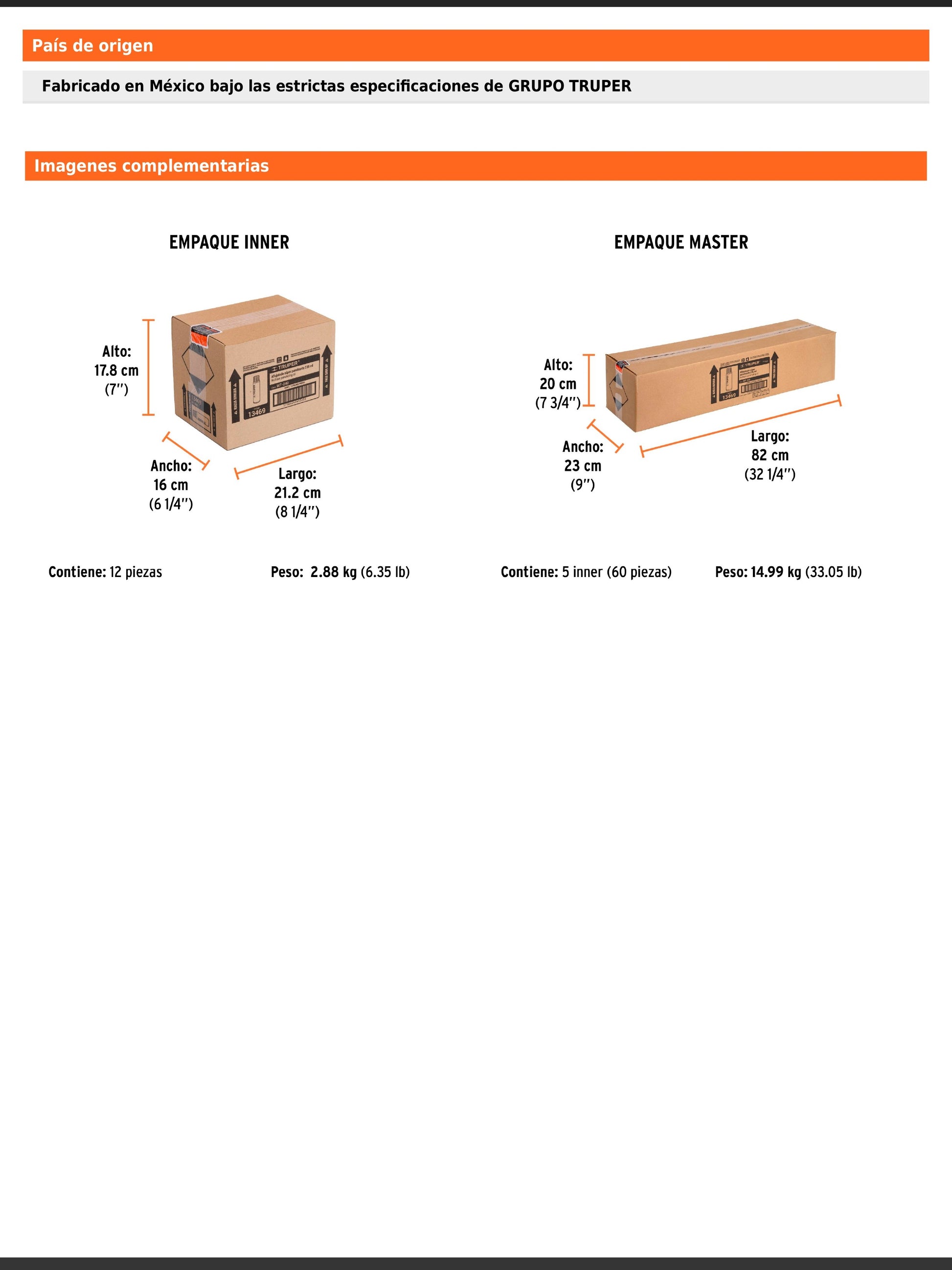 - País de origen: Fabricado en México bajo las estrictas especificaciones de Grupo Truper.