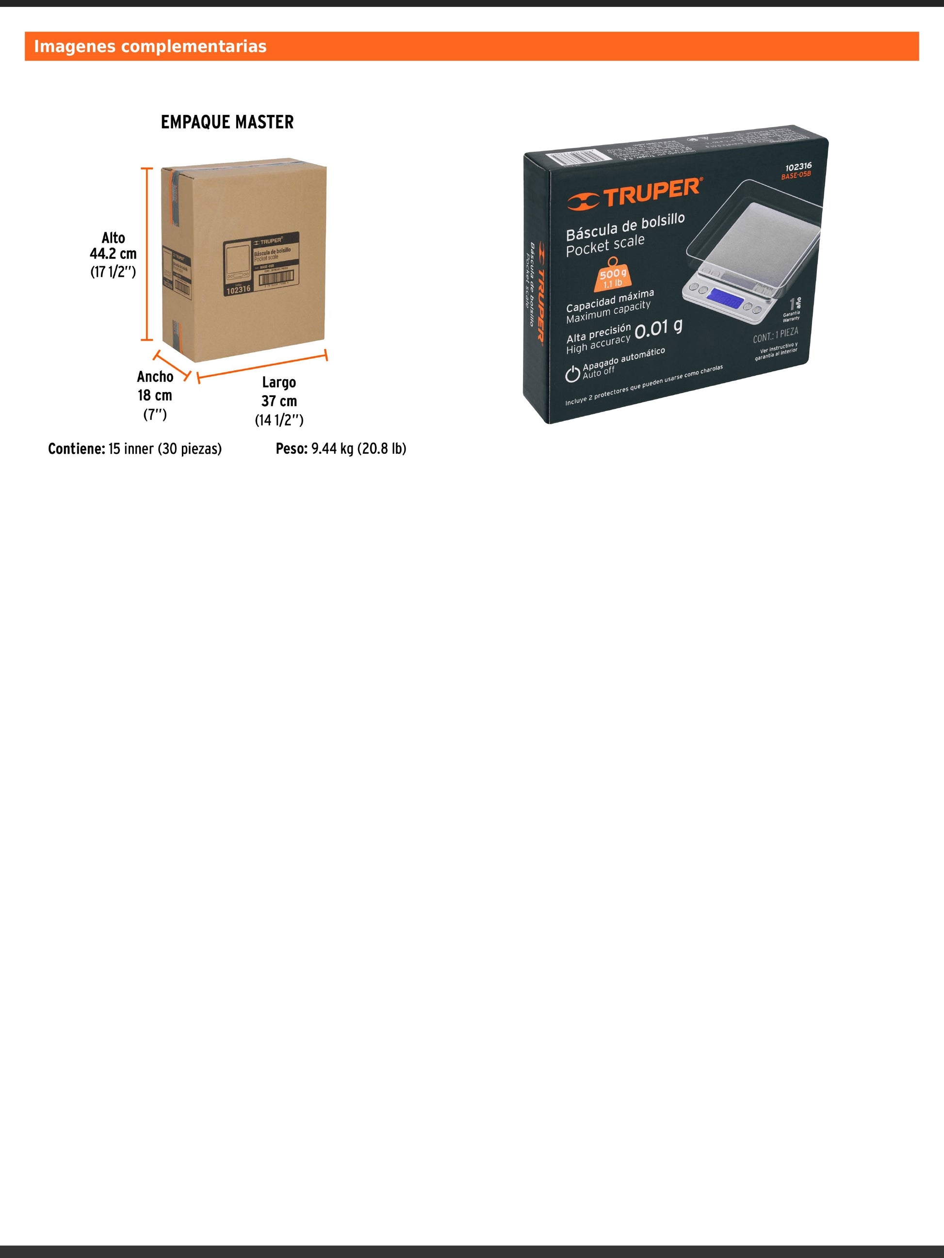 - Unidad de medida g / oz / ozt / dwt / ct / gn / tl.