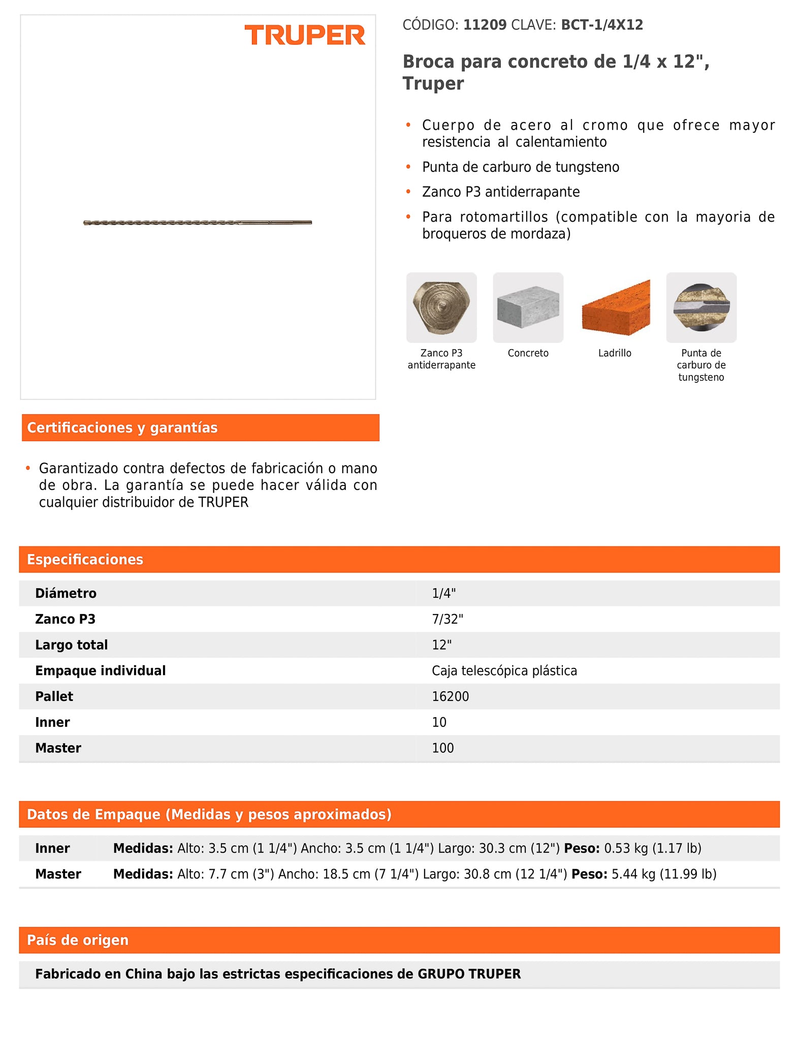 - Fabricado en China bajo las especificaciones de Grupo Truper.