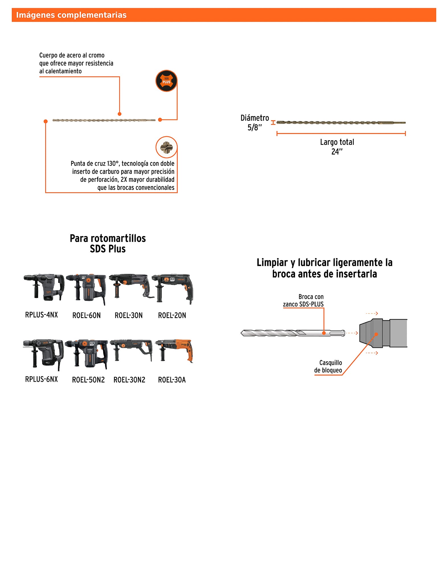 Broca SDS Plus de 5/8 in con largo de 24 in