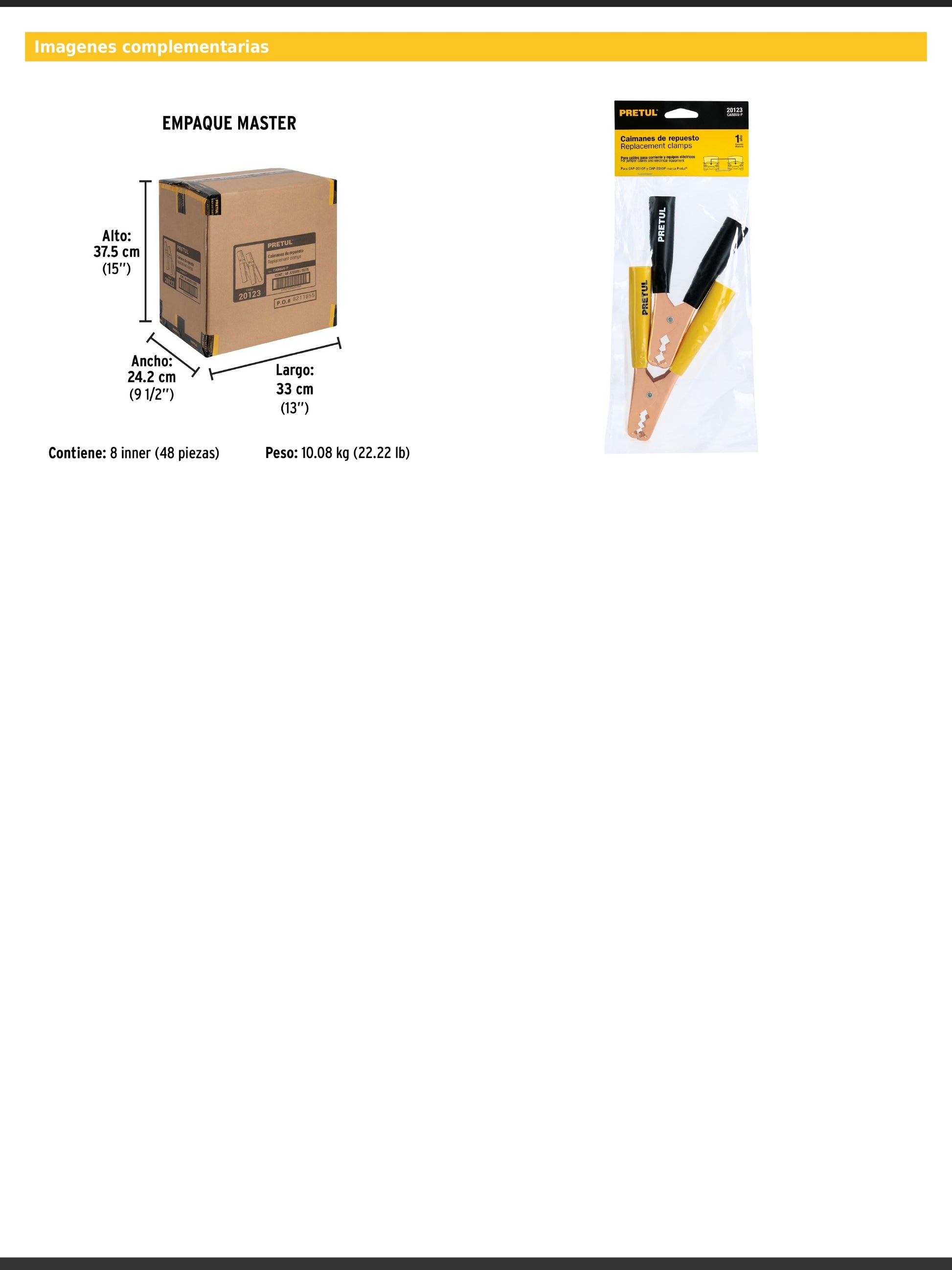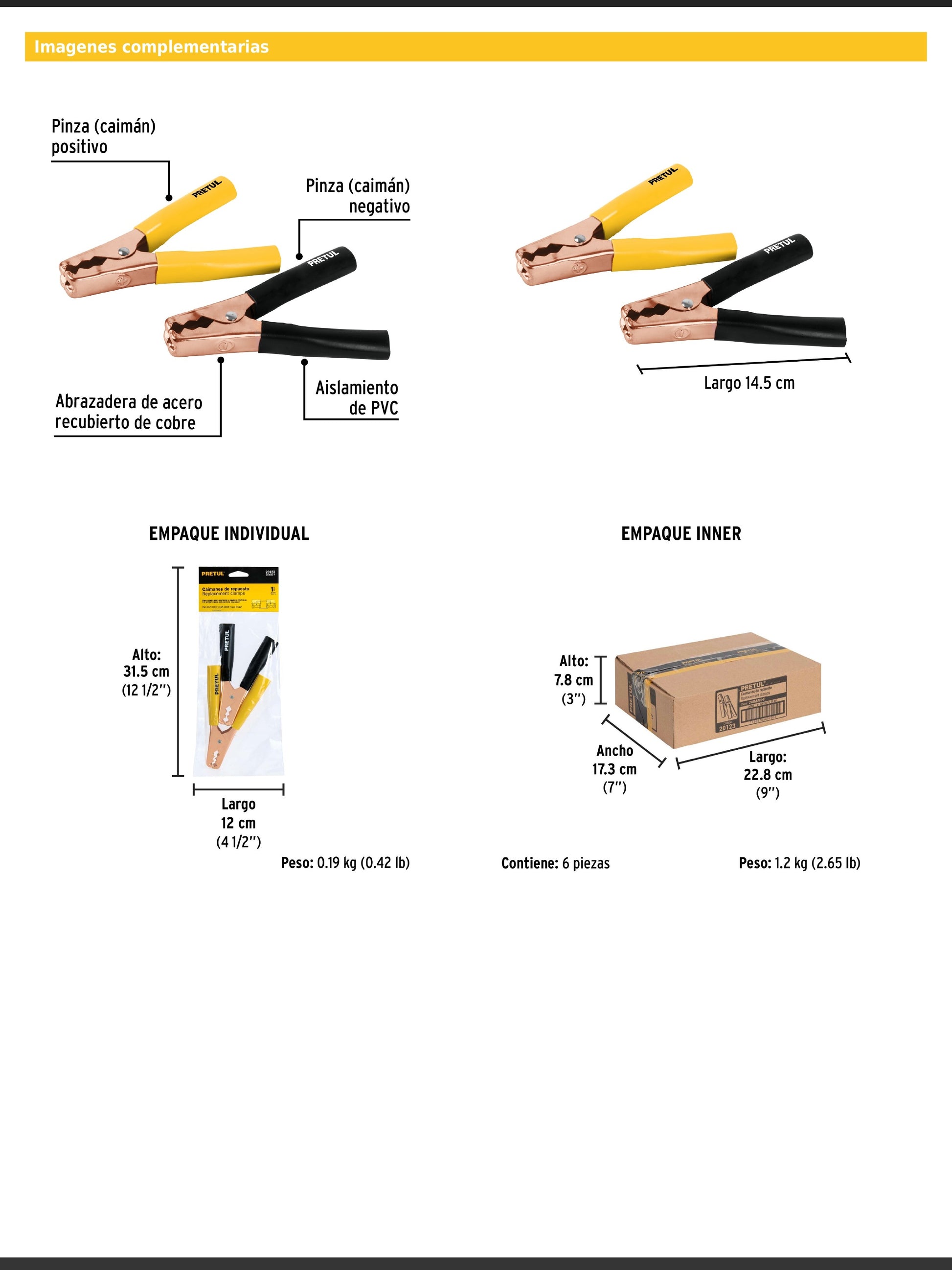 Caballete con 2 caimanes revestidos con PVC, equipados con mordazas de acero recubierto de cobre. Diseñados para cables pasa corriente modelos CAP-2010P y CAP-2510P marca Pretul®.