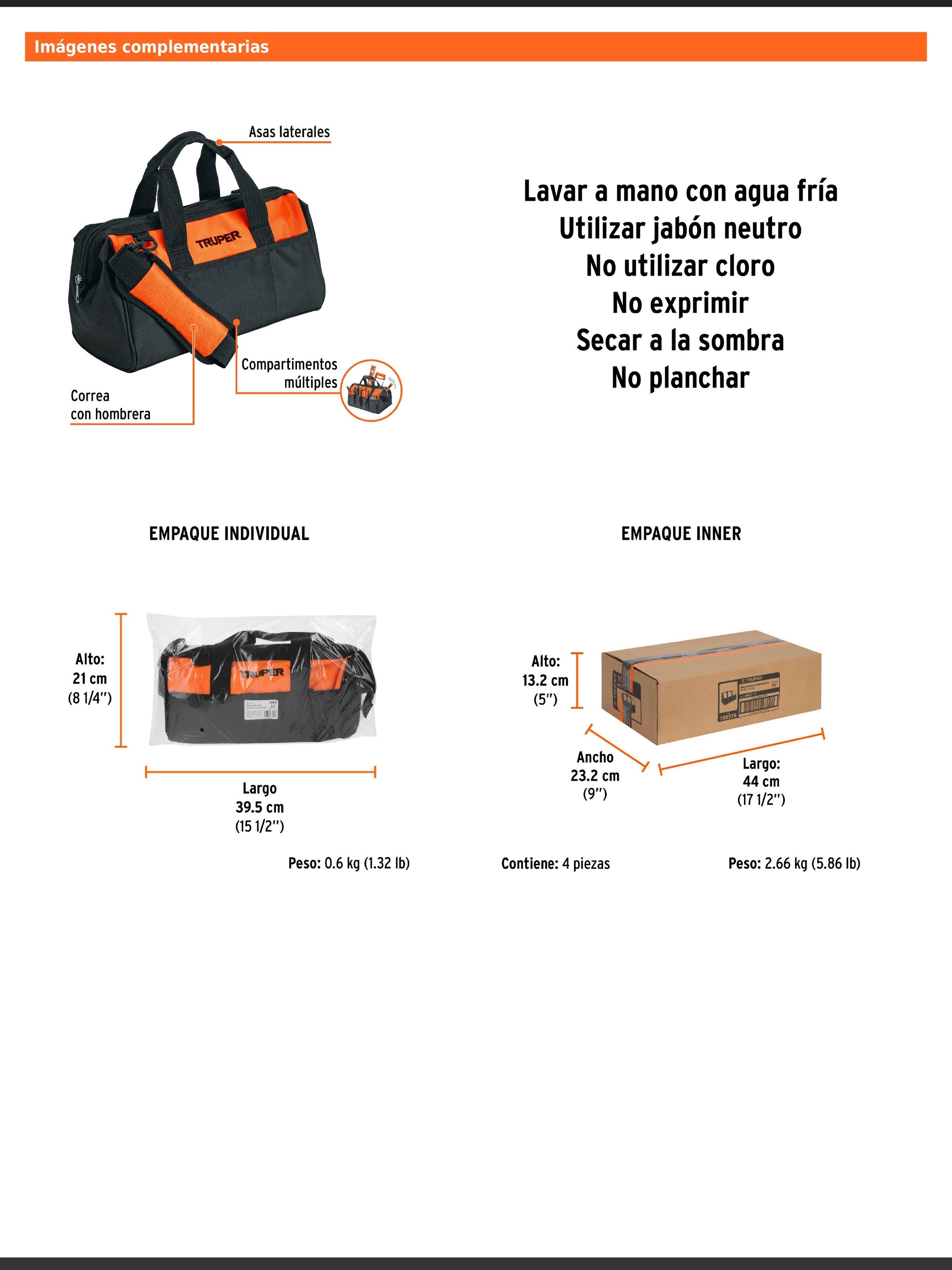 Maleta portaherramientas fabricada en poliéster de 300 deniers con doble capa para uso rudo y forro interno de PVC que brinda mayor resistencia. Cuenta con correa de hombro ajustable y múltiples compartimentos organizadores internos que permiten mantener las herramientas en orden. Se presenta en empaque individual tipo bolsa.