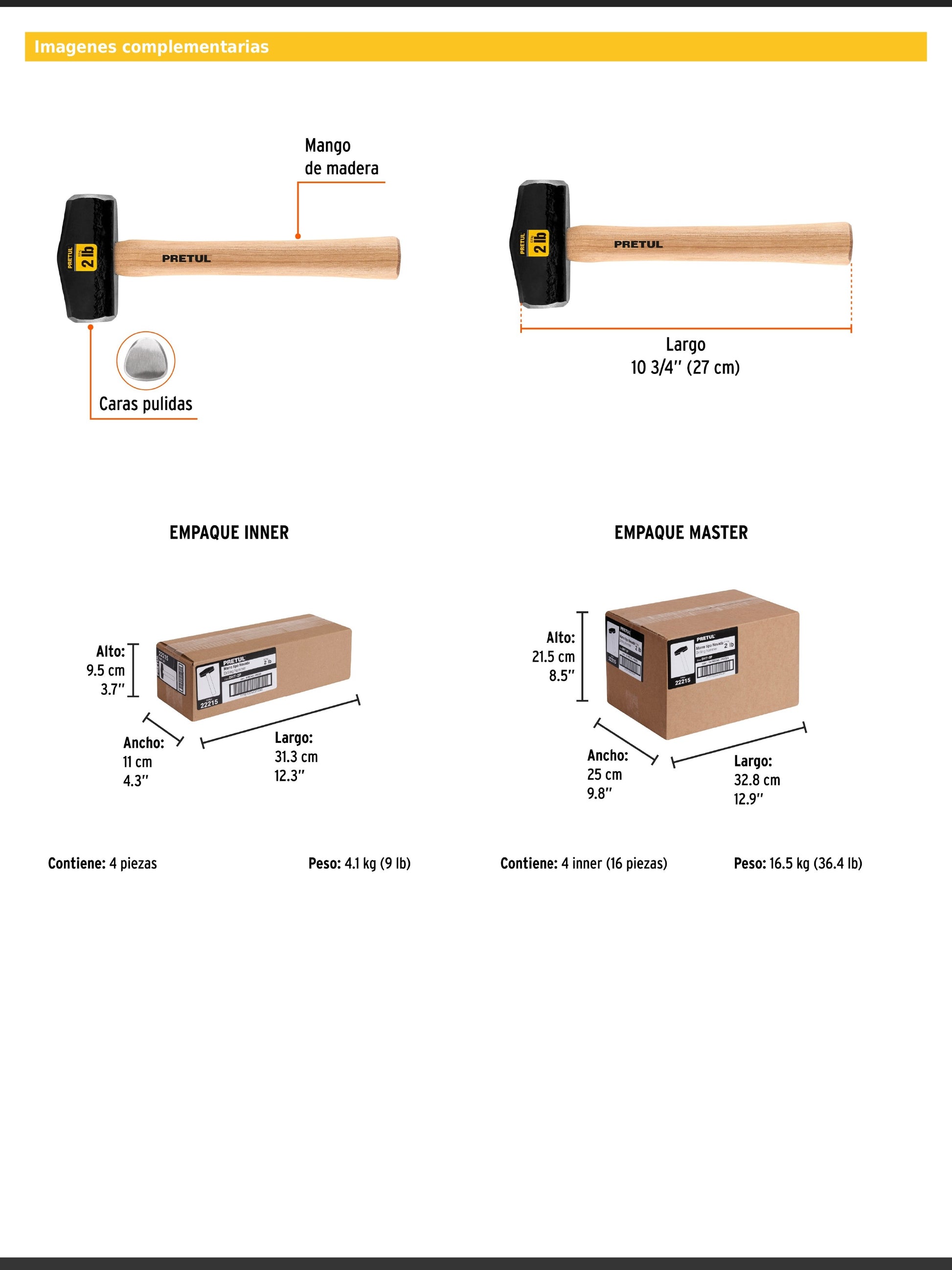 Largo de mango 10-3/4" (27 cm).