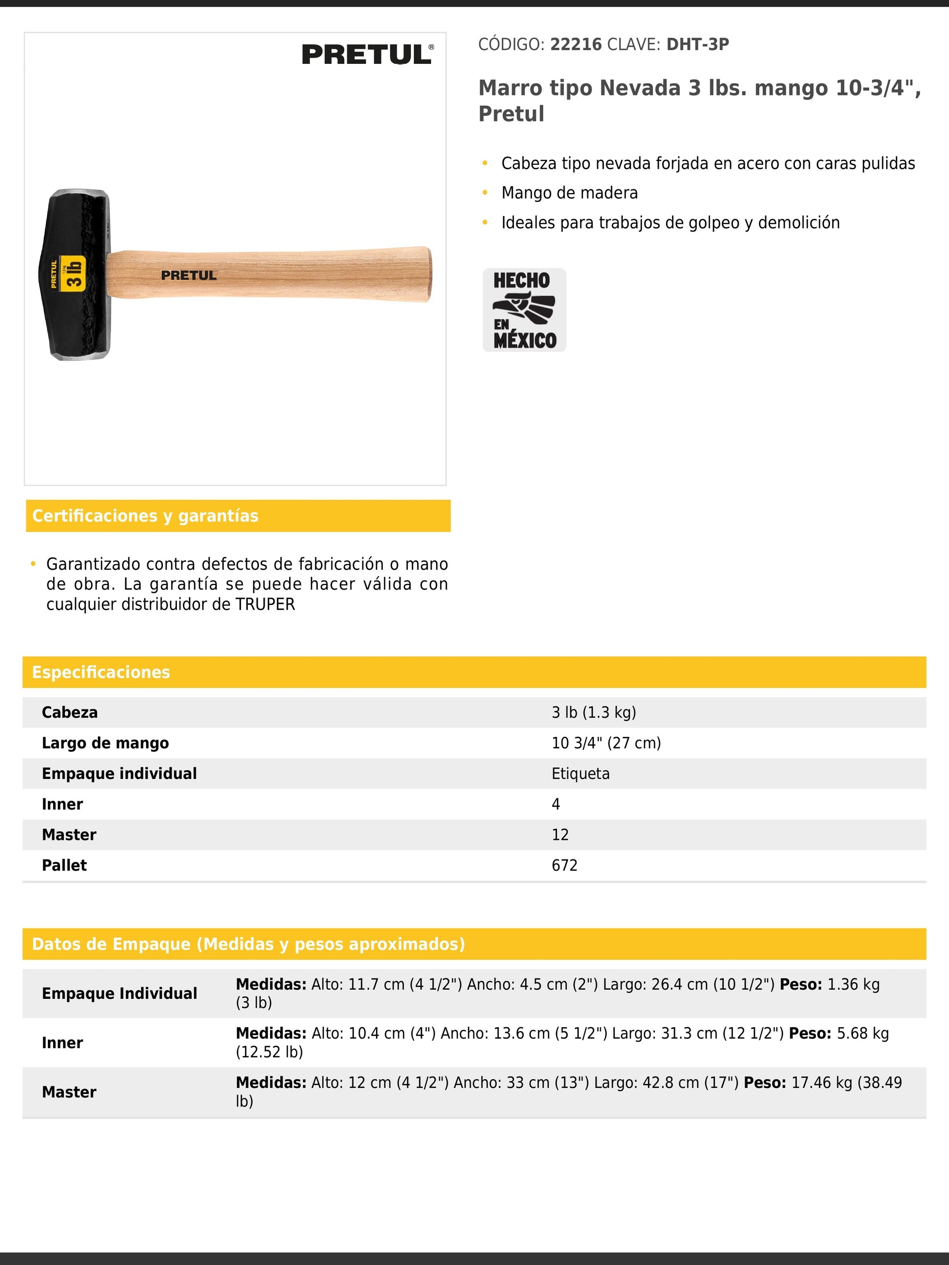 Marro tipo Nevada de 3 libras con mango de 27 cm