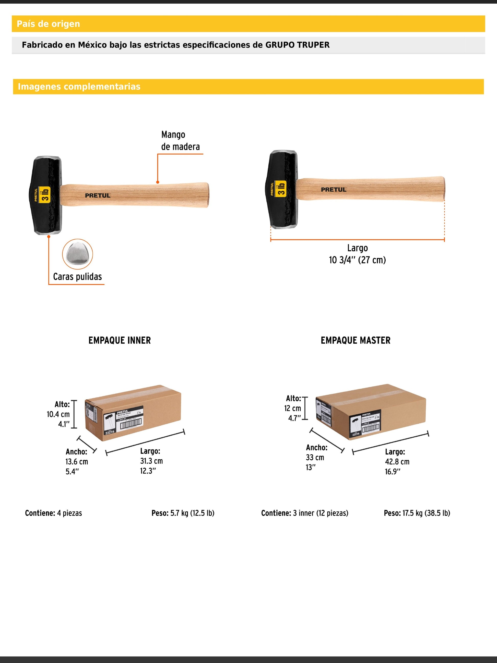 - Fabricado en México bajo especificaciones de Grupo Truper.