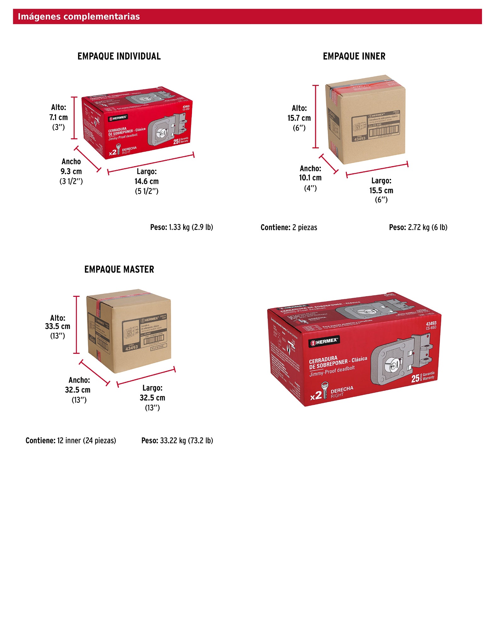 Cerradura de sobreponer para puerta corrediza clásica derecha