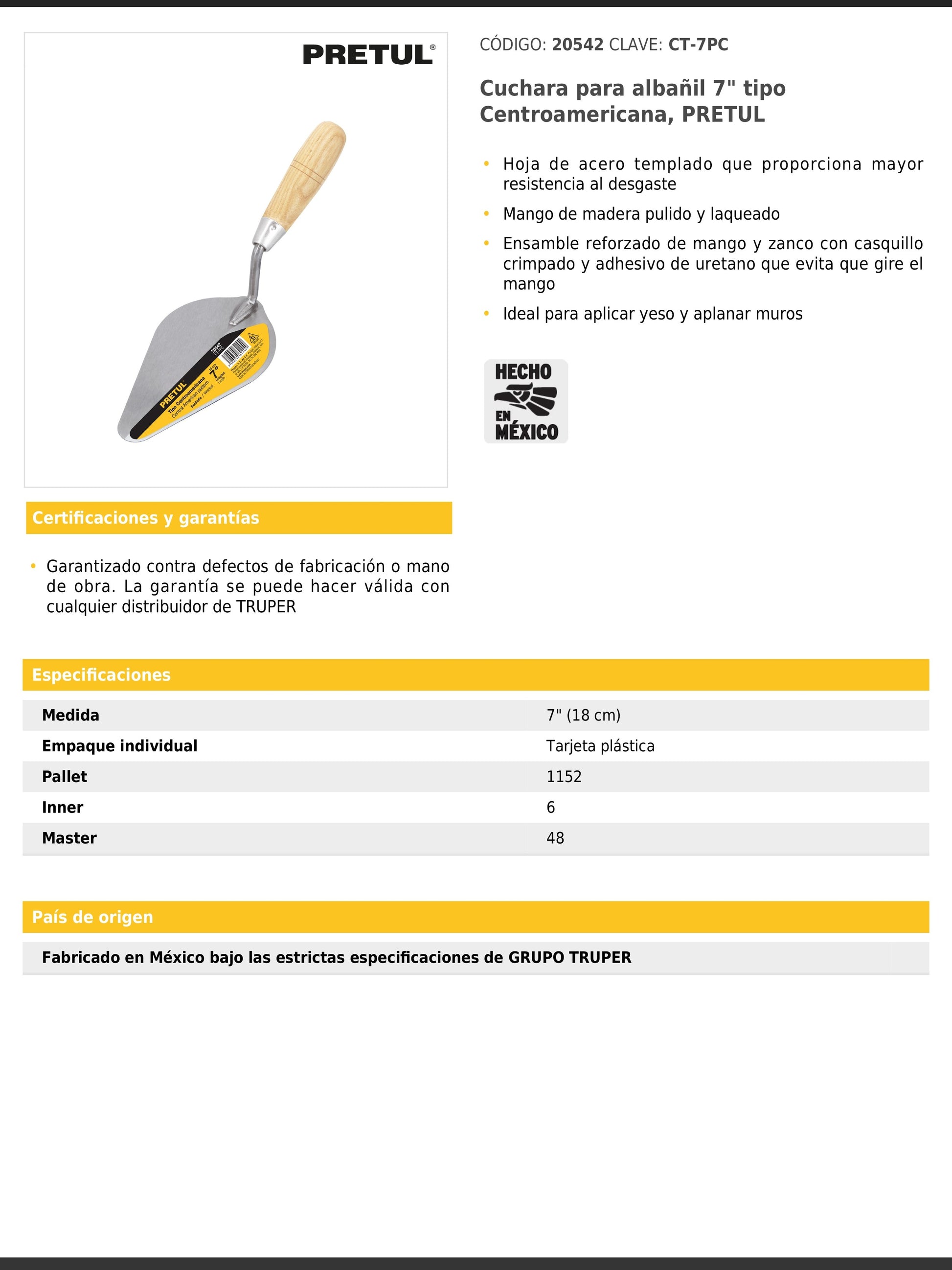 Cuchara para albañil de 7 pulgadas tipo Centroamericana