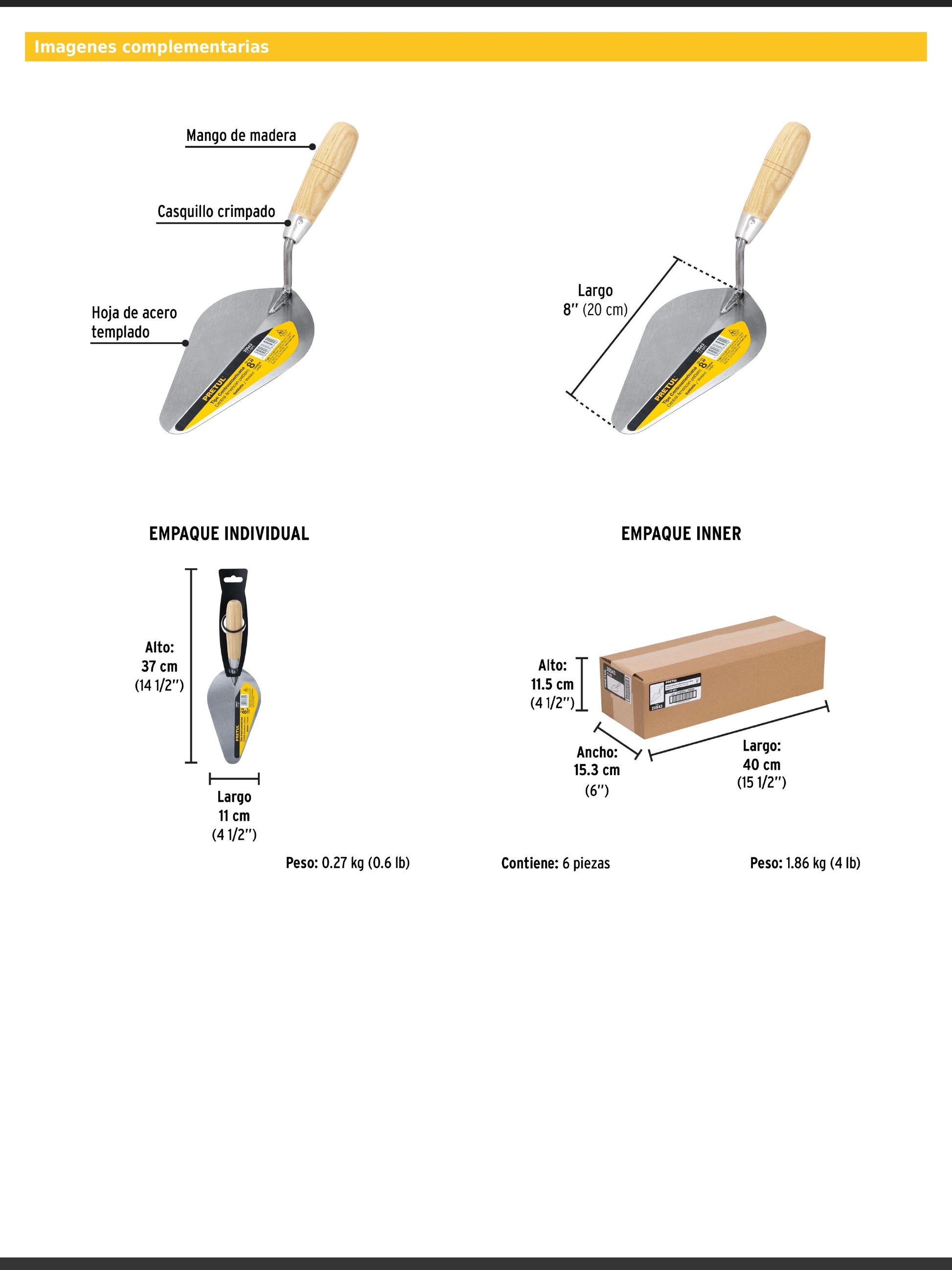 Cuchara para albañil de 8" fabricada con hoja de acero templado que ofrece mayor resistencia al desgaste. Su mango de madera pulido y laqueado asegura un agarre firme y cómodo. El ensamble reforzado con casquillo crimpado y adhesivo de uretano evita que el mango gire, brindando mayor estabilidad y seguridad. Es ideal para aplicar yeso y aplanar muros con precisión.