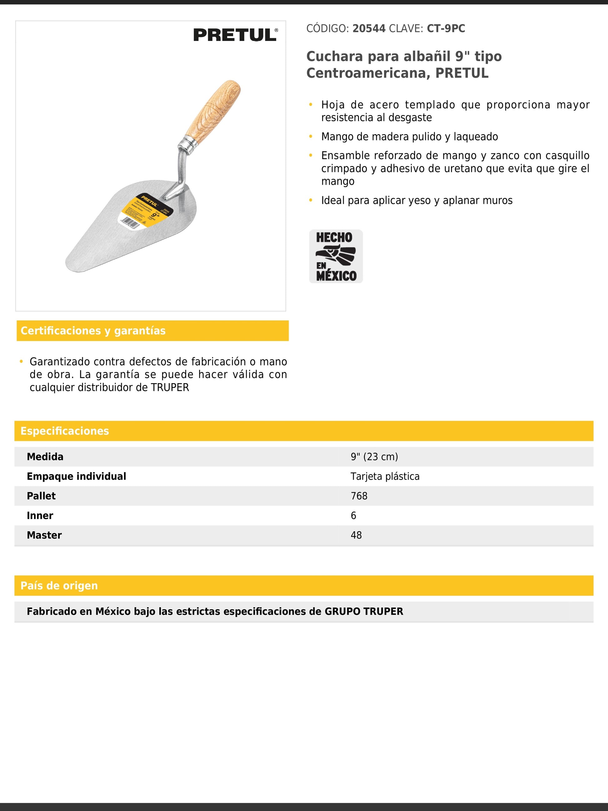 Cuchara para albañil de 9 pulgadas tipo Centroamericana