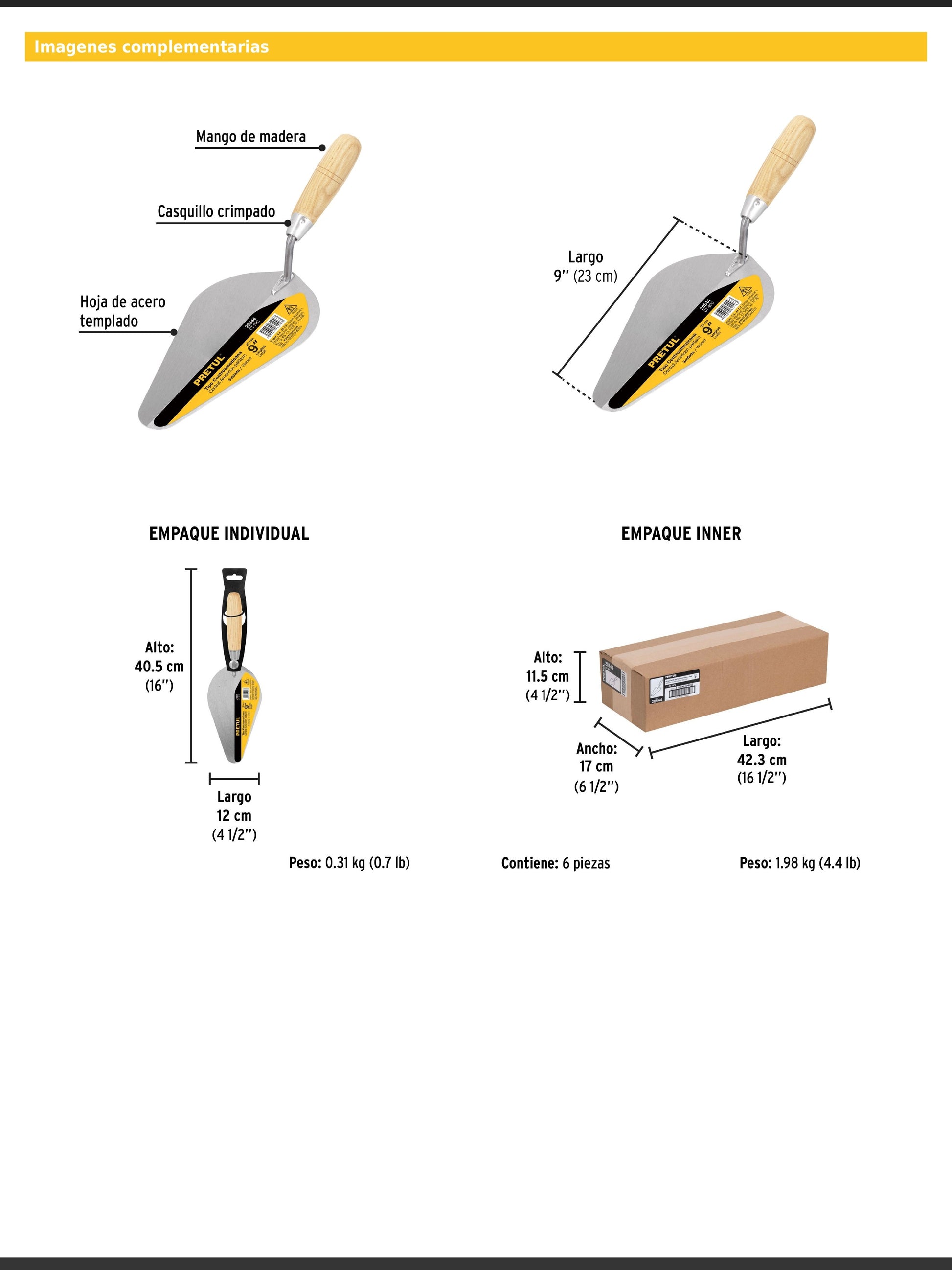 Cuchara para albañil de 9" diseñada con hoja de acero templado que ofrece mayor resistencia al desgaste. Su mango de madera pulido y laqueado brinda un agarre cómodo y seguro. El ensamble reforzado entre el mango y el zanco, con casquillo crimpado y adhesivo de uretano, evita que el mango gire. Es ideal para aplicar yeso y aplanar muros, garantizando durabilidad y eficiencia en cada uso.
