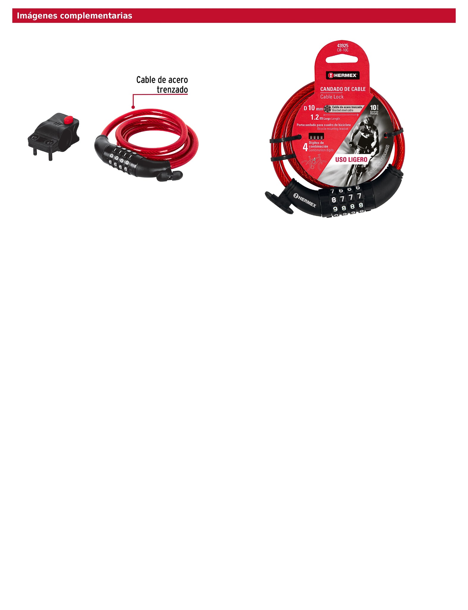 Candado de cable con combinación 10 mm x 1.20 m