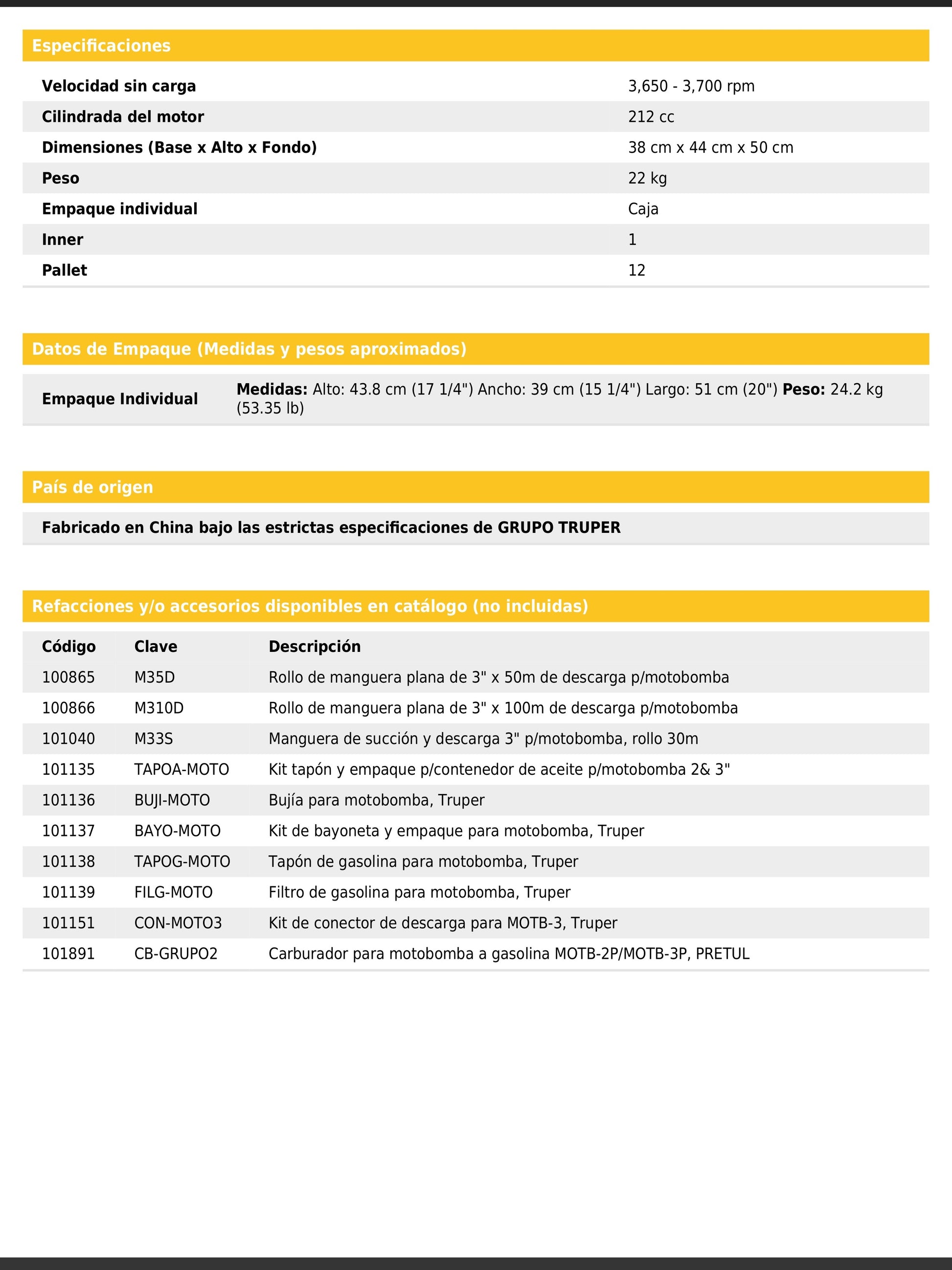 - Fabricado en China bajo especificaciones de Grupo Truper.