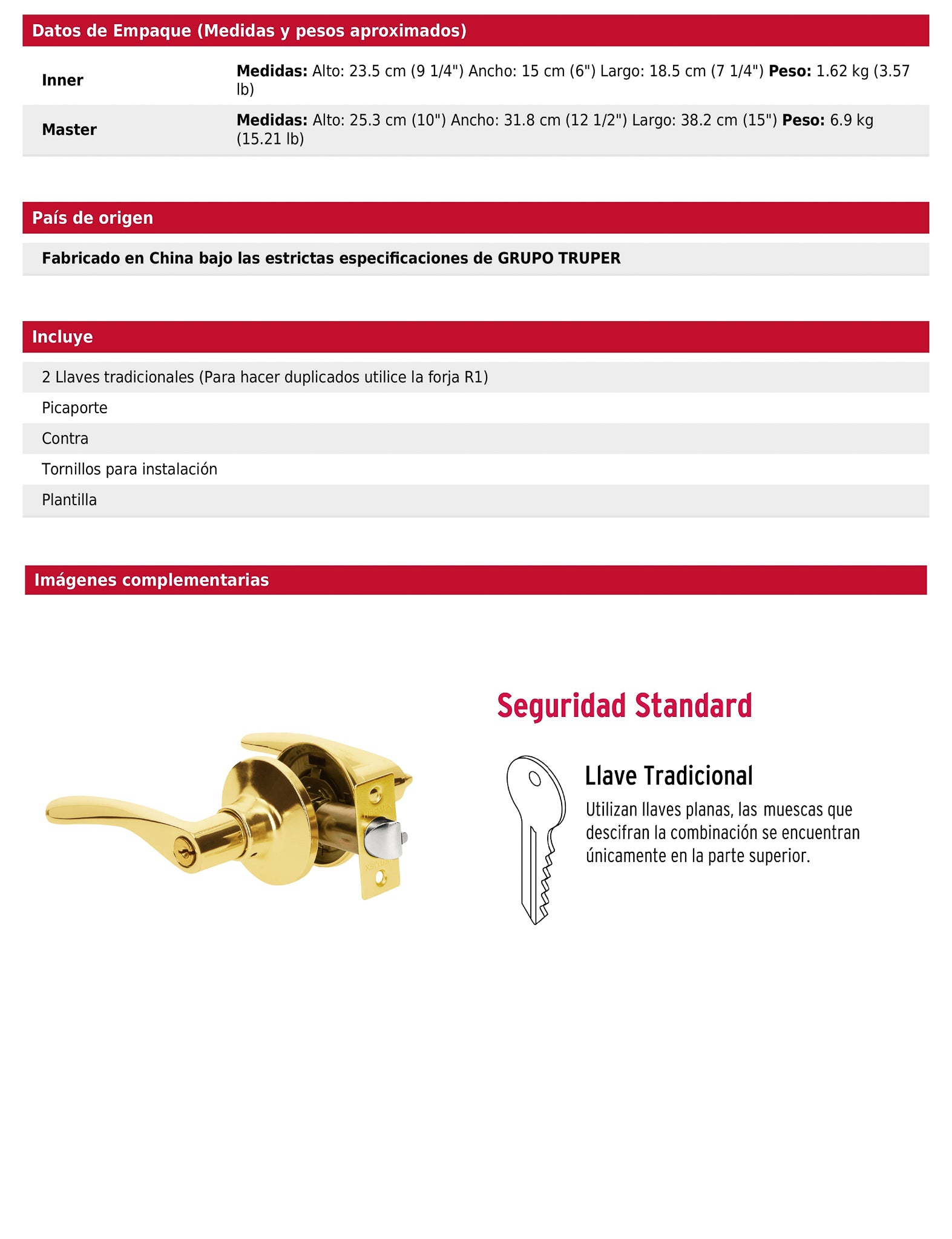 País de origen Fabricado en China bajo las estrictas especificaciones de Grupo Truper.