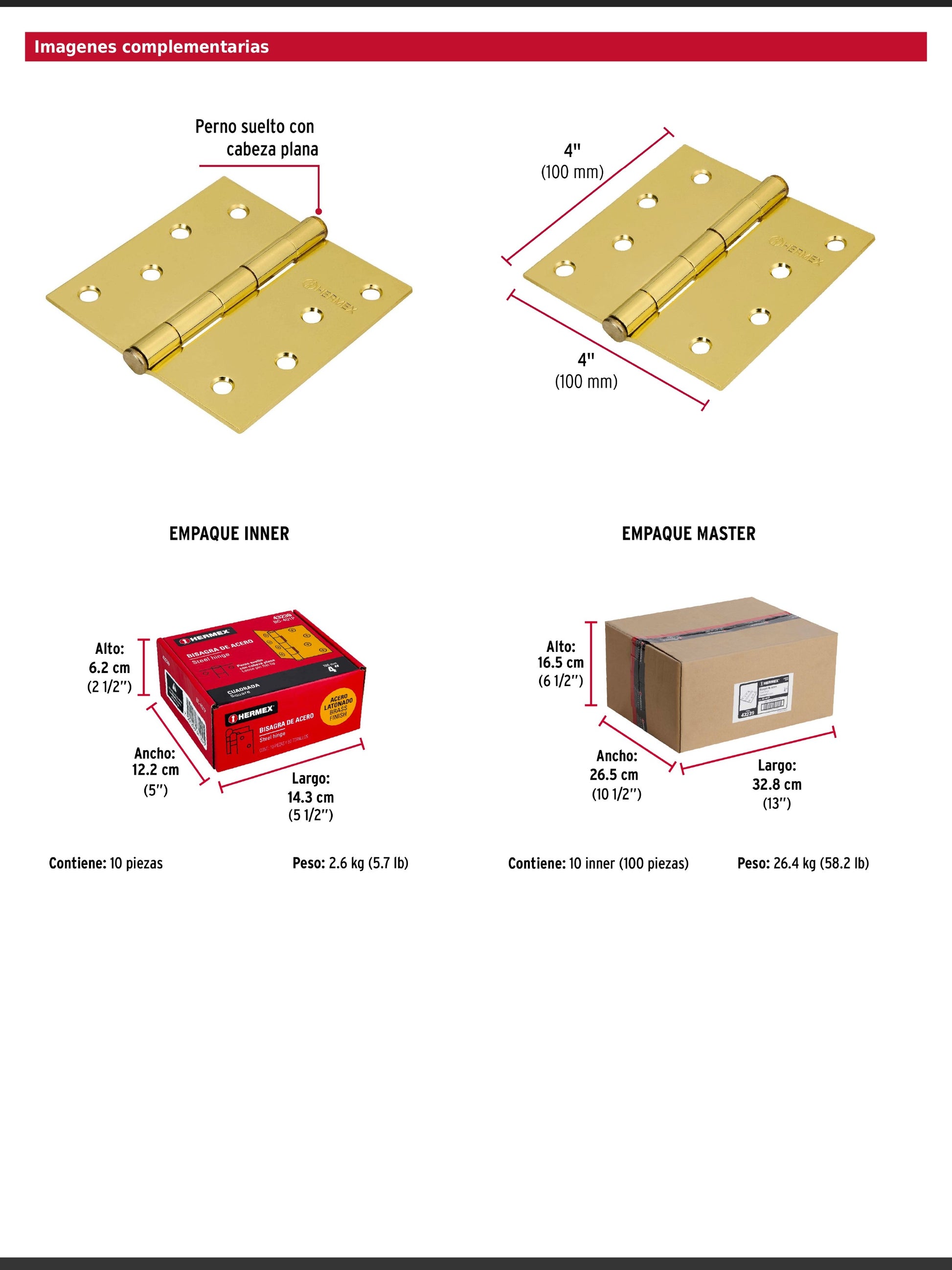 Fabricada en acero con acabado latonado, cuenta con perno suelto con cabeza plana y 30% mayor espesor que las marcas tradicionales. Recomendada para aplicaciones en carpintería y en la industria mueblera. Incluye tornillería y garantía contra defectos de fabricación o mano de obra.