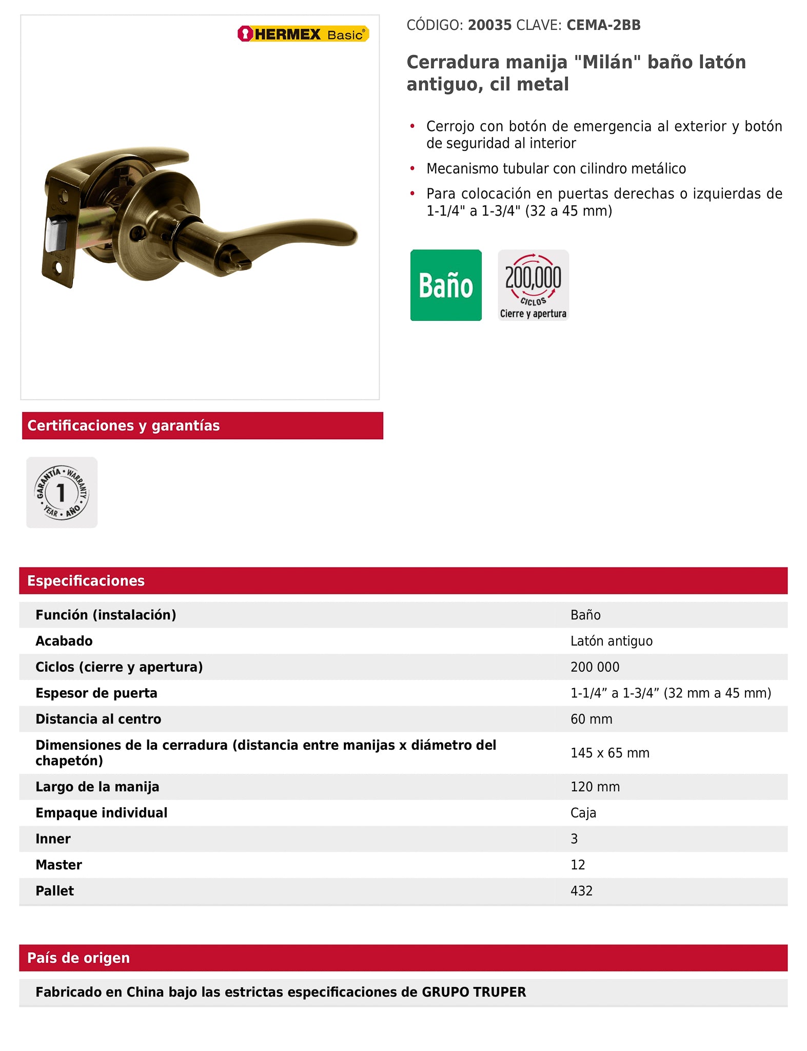 País de origen Fabricado en China bajo las estrictas especificaciones de Grupo Truper.