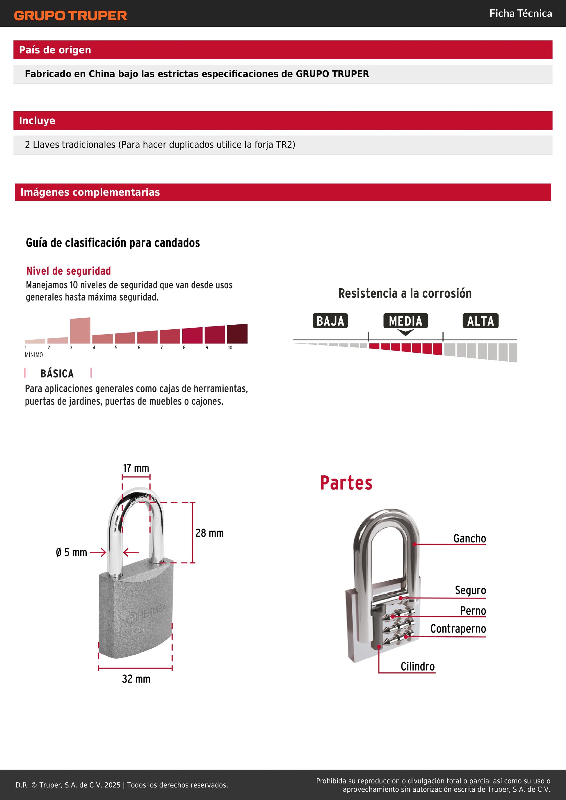 - Fabricado en China bajo especificaciones de Grupo Truper.