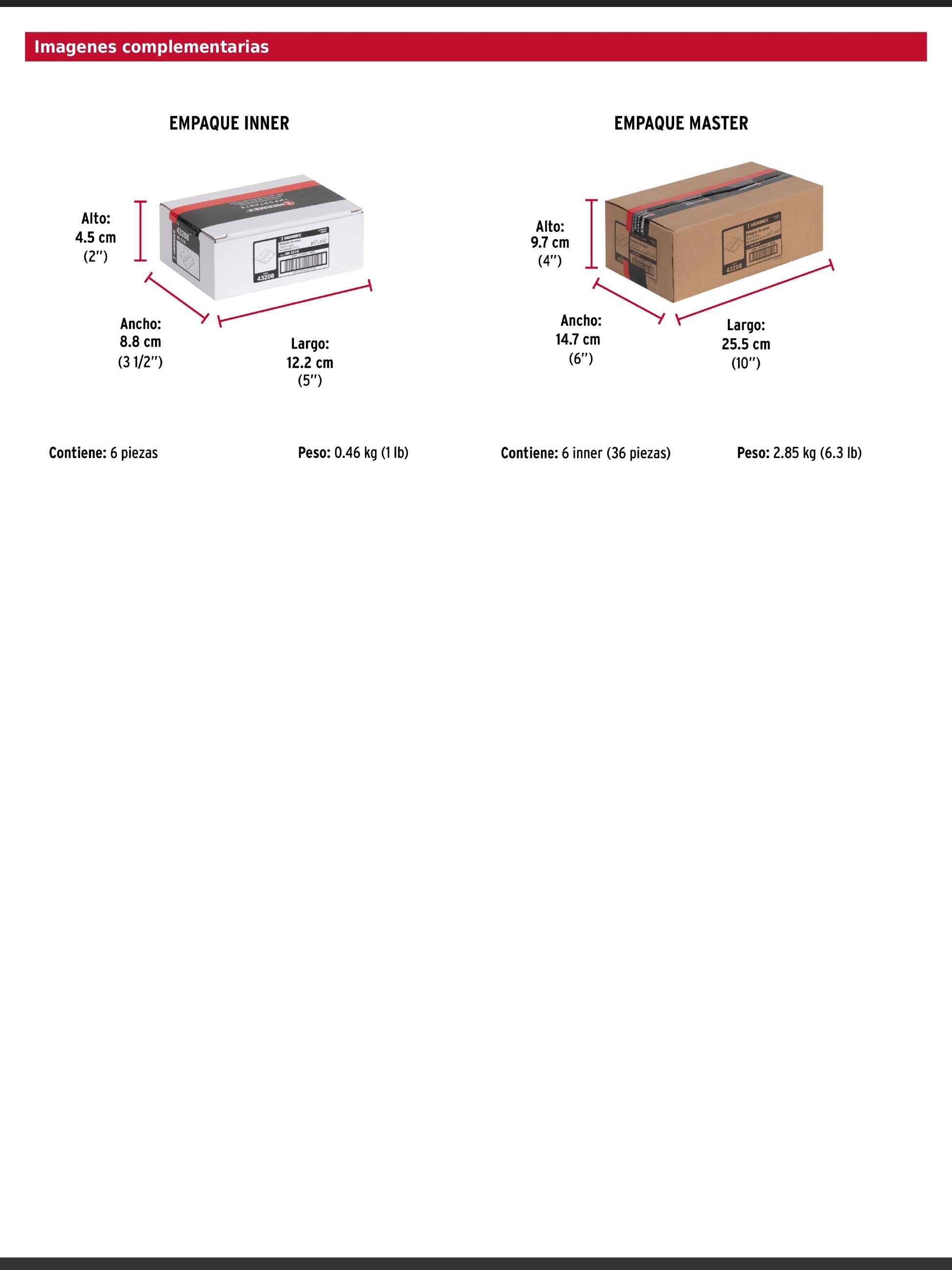 - Medida (largo x ancho) 2-1/2" x 1-5/8" (65 x 40 mm).