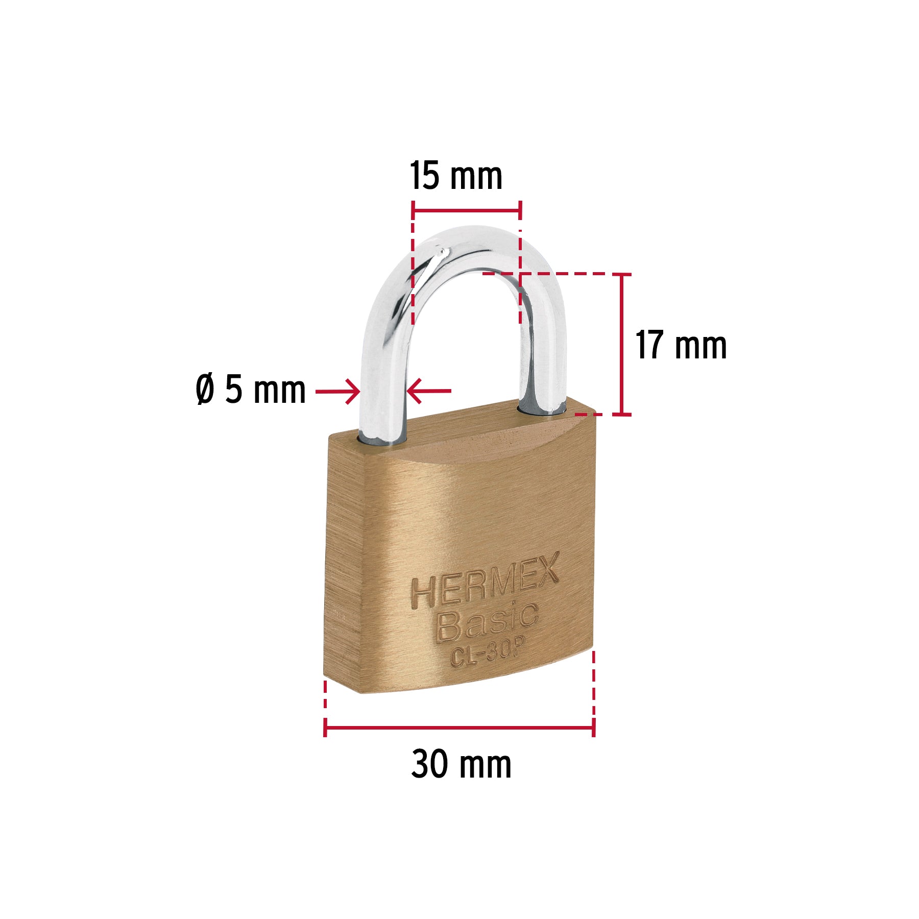 Candado de latón de 30 mm con gancho corto