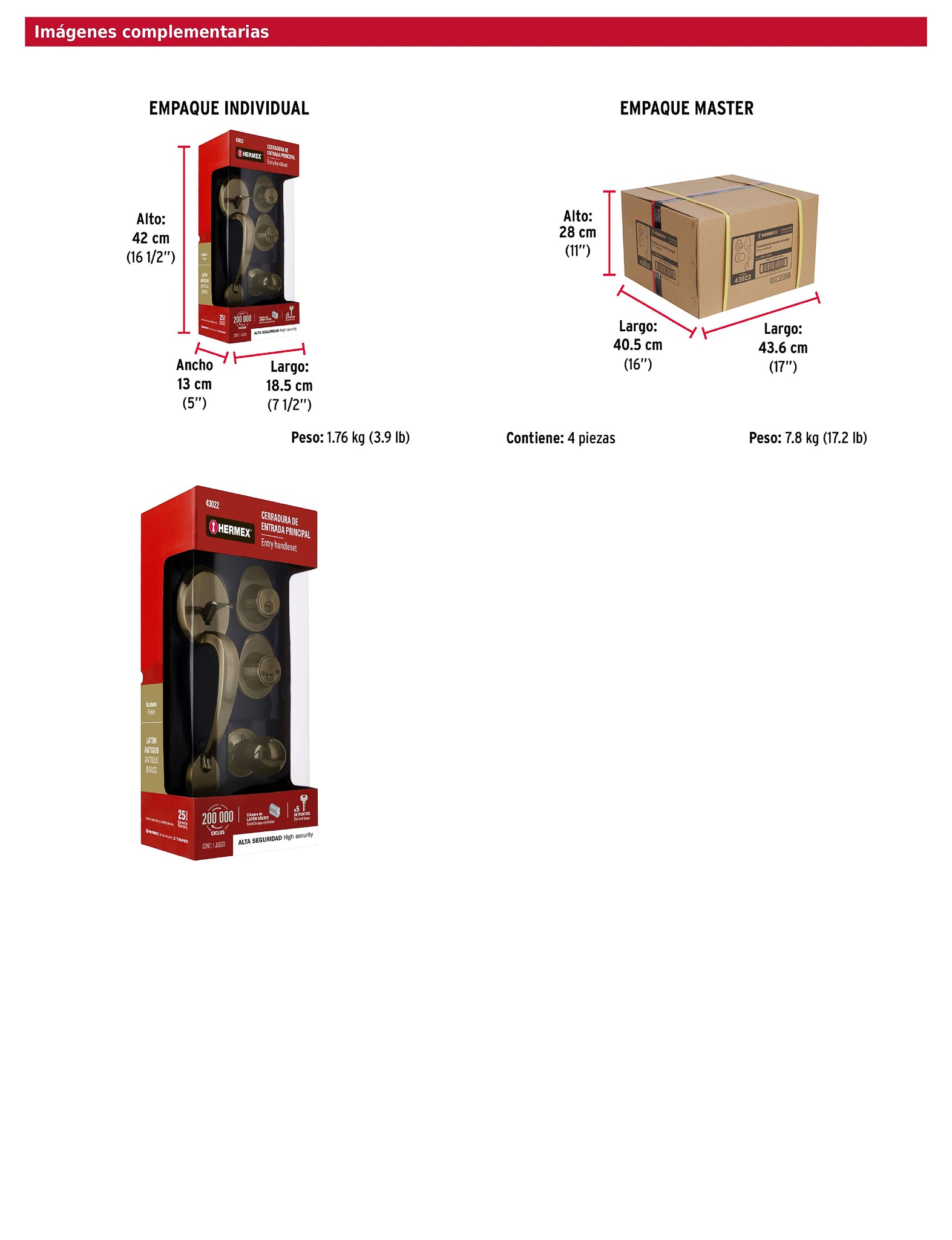 - Espesor de puerta 1-3/8" a 1-3/4" (35 mm a 45 mm).