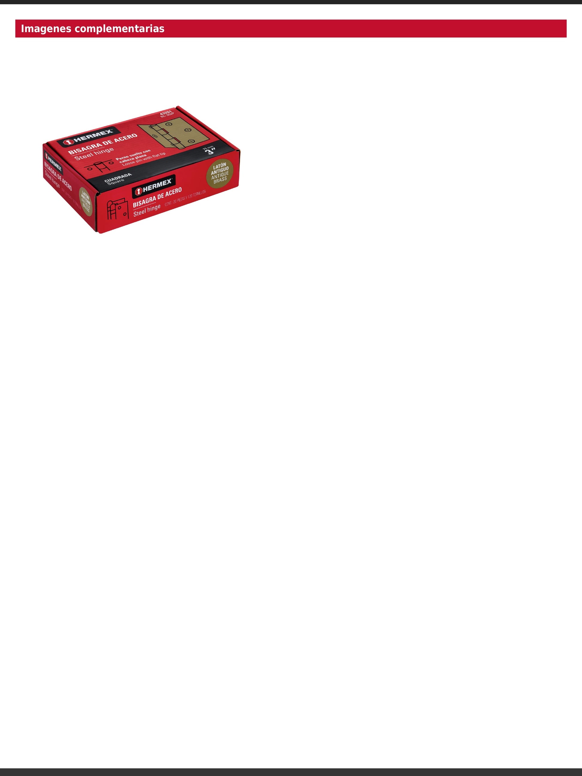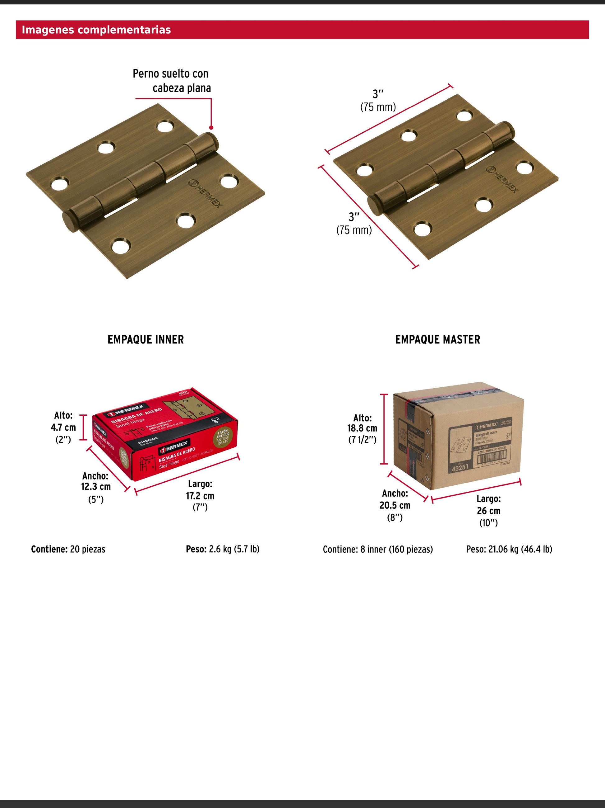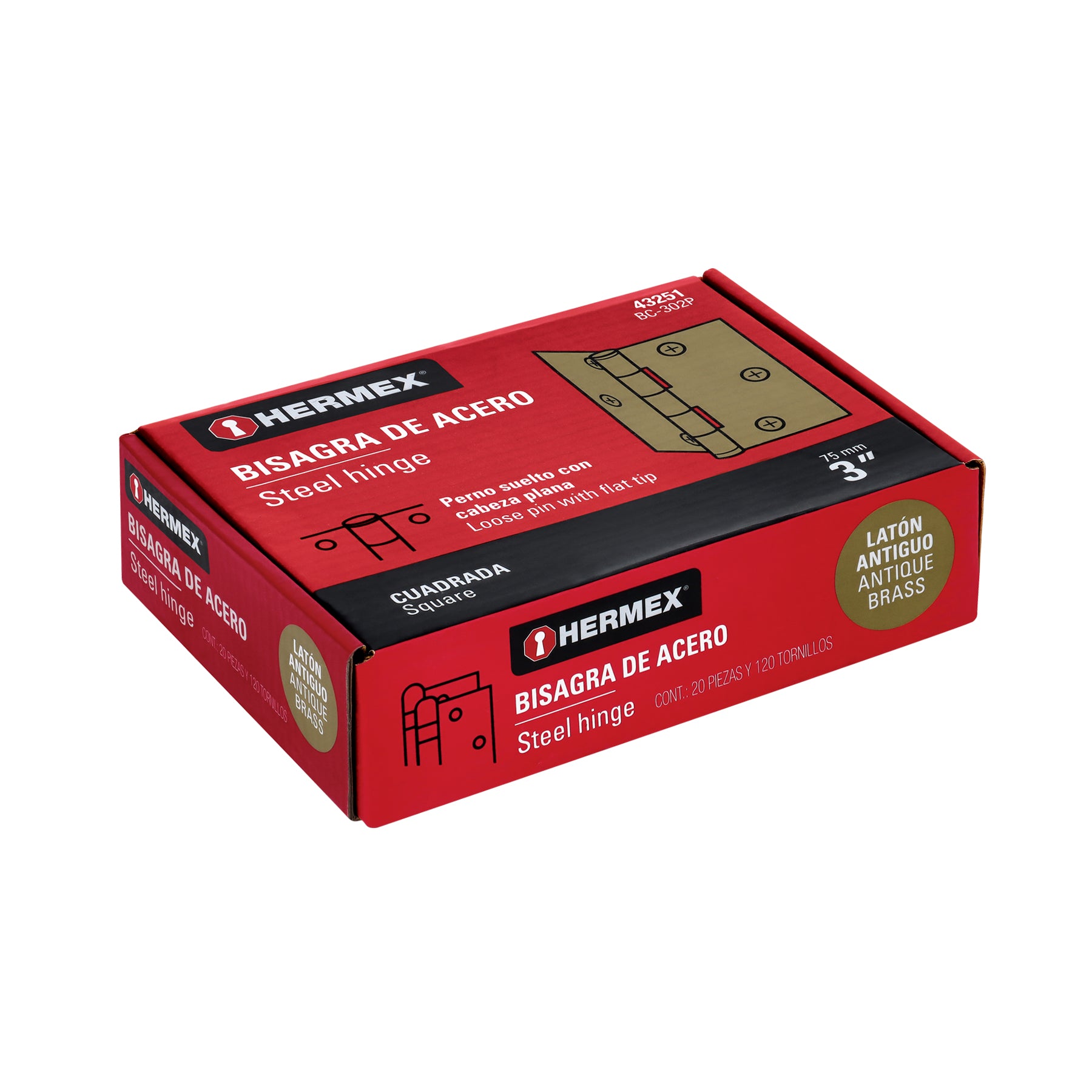 Fabricada en acero con acabado latón antiguo, incorpora perno suelto con cabeza plana y cuenta con 30% mayor espesor que las marcas tradicionales. Especialmente diseñada para aplicaciones en carpintería y en la industria mueblera. Incluye tornillería y garantía contra defectos de fabricación o mano de obra.
