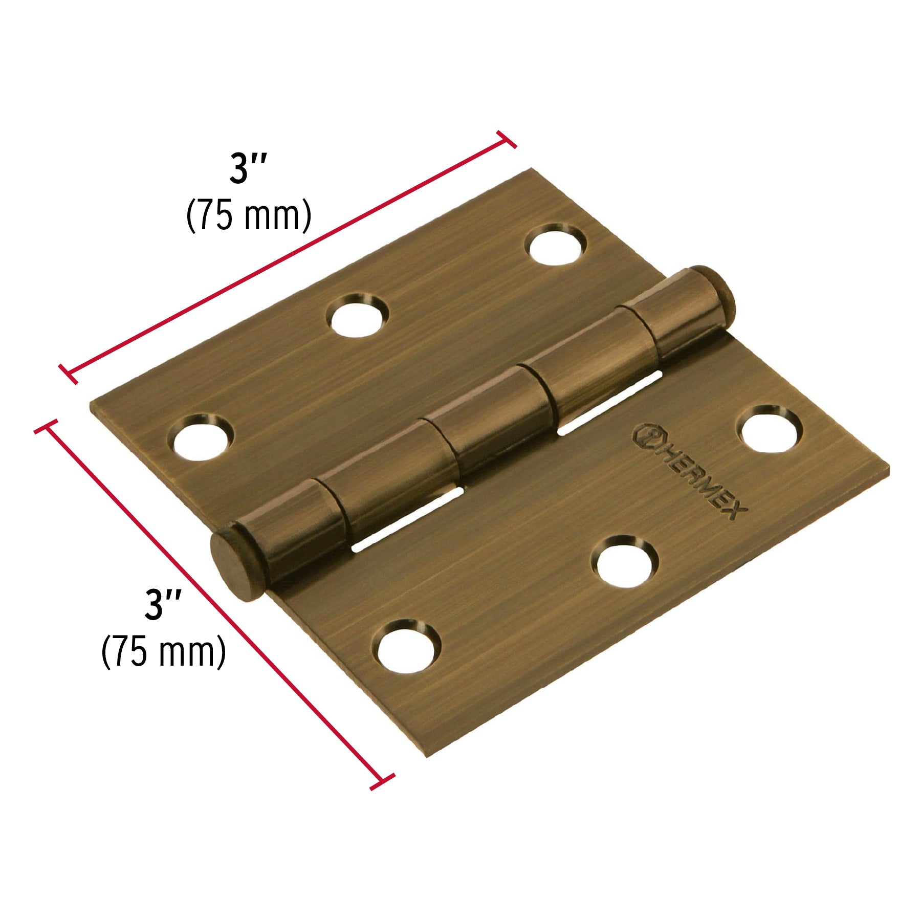 Bisagra cuadrada de acero con acabado latón antiguo