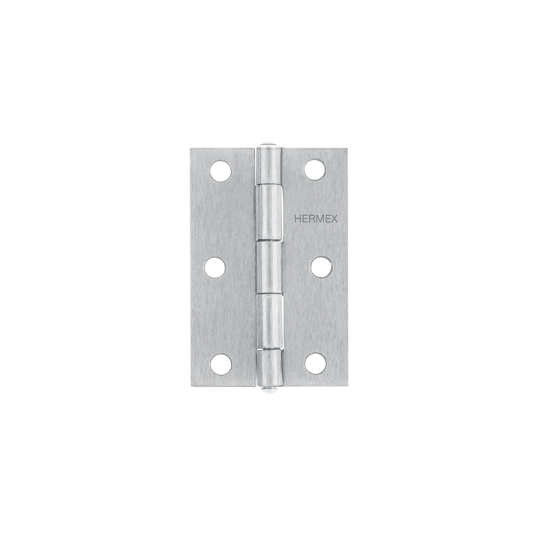 Bisagra fabricada en acero inoxidable con acabado pulido, con perno remachado y cabeza media bola. Diseñada para carpintería y la industria mueblera, incluye tornillería para su instalación.