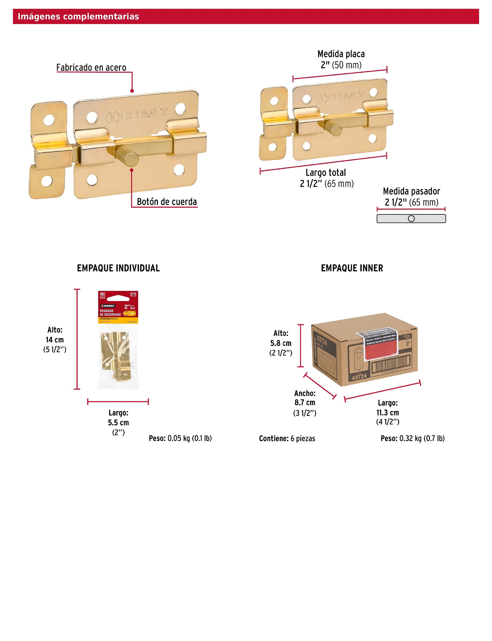 - Medida pasador 65 mm (2-1/2”).