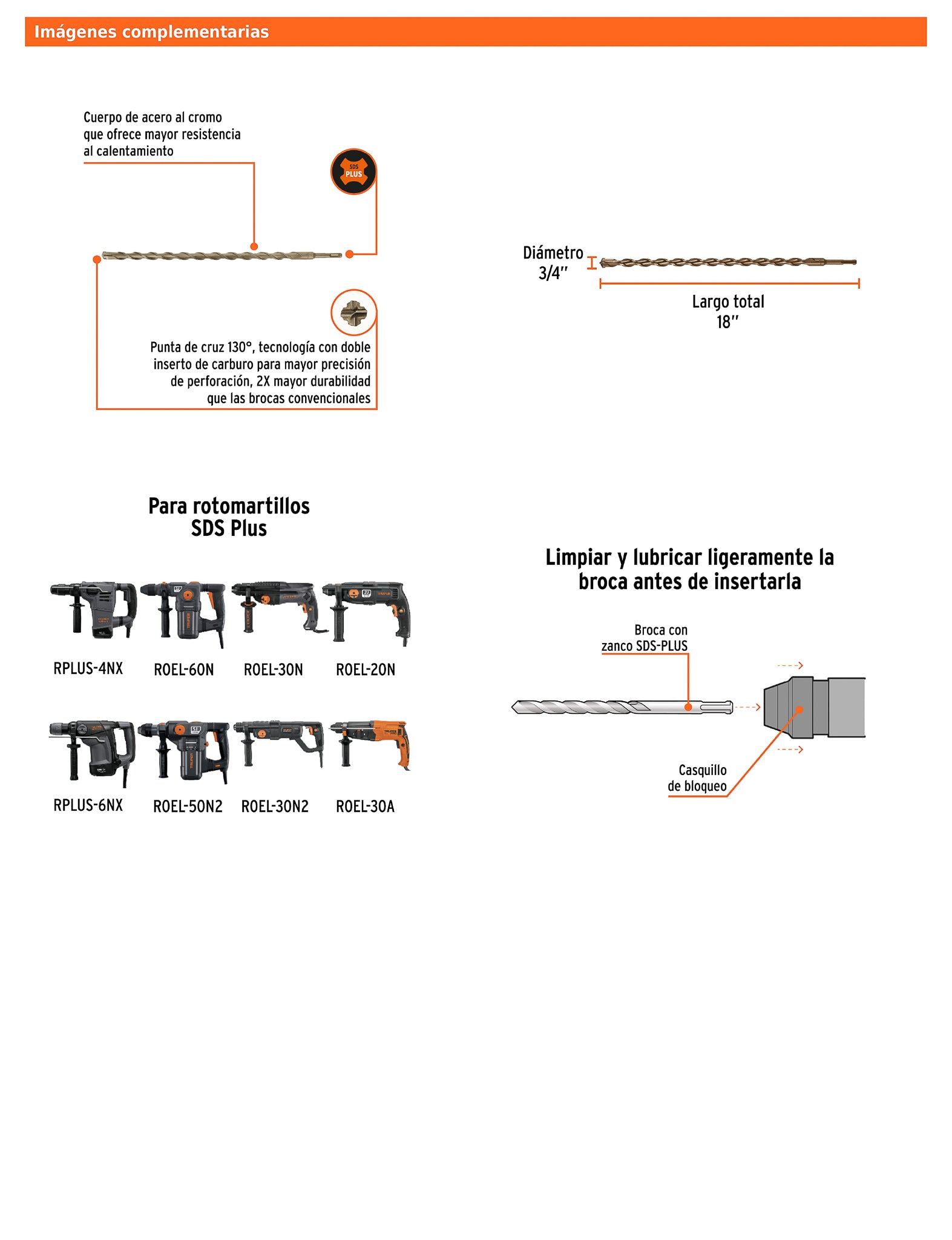 Broca SDS Plus de 3/4 in con largo de 18 in