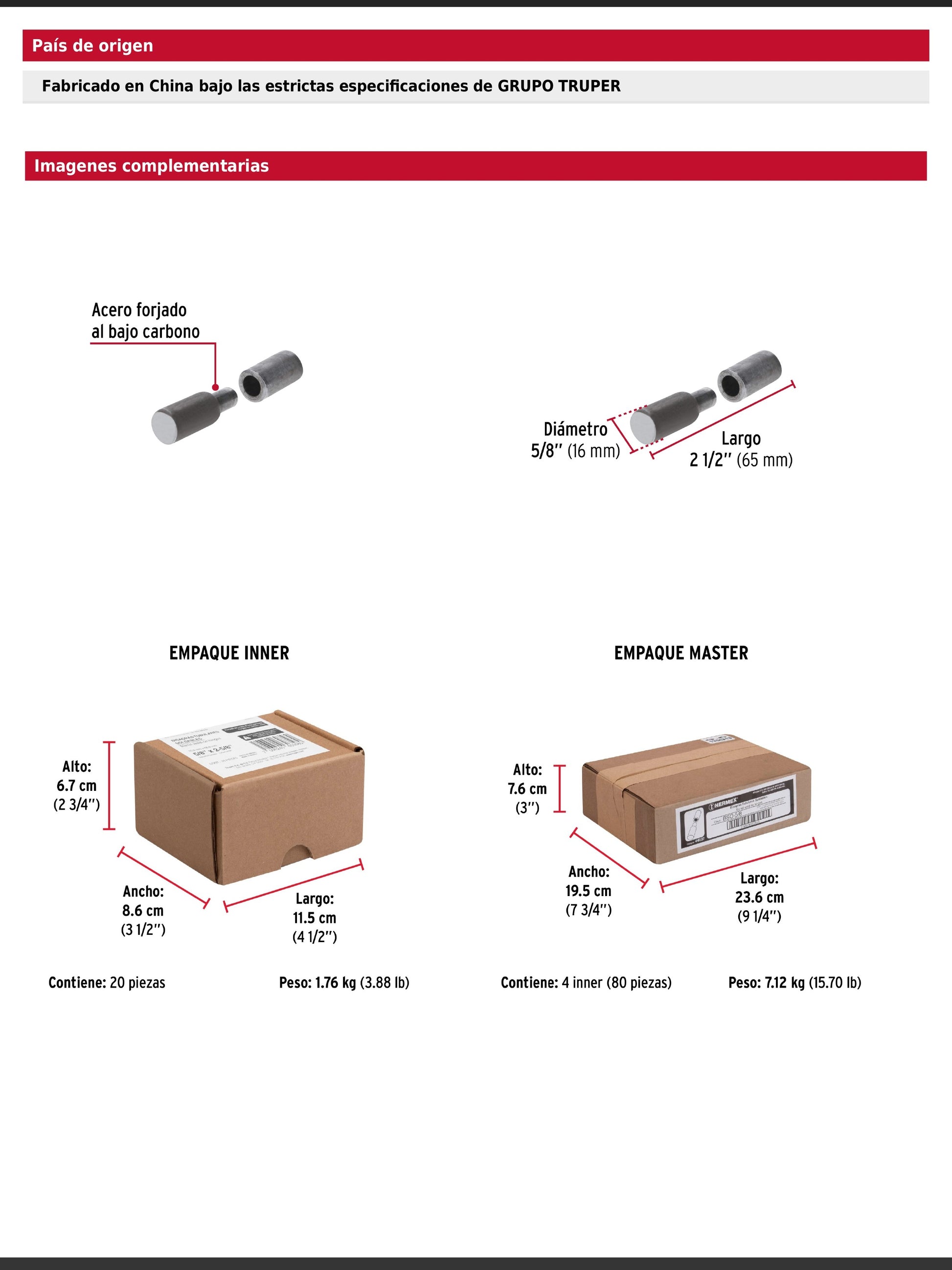 - Fabricado en China bajo especificaciones de Grupo Truper.