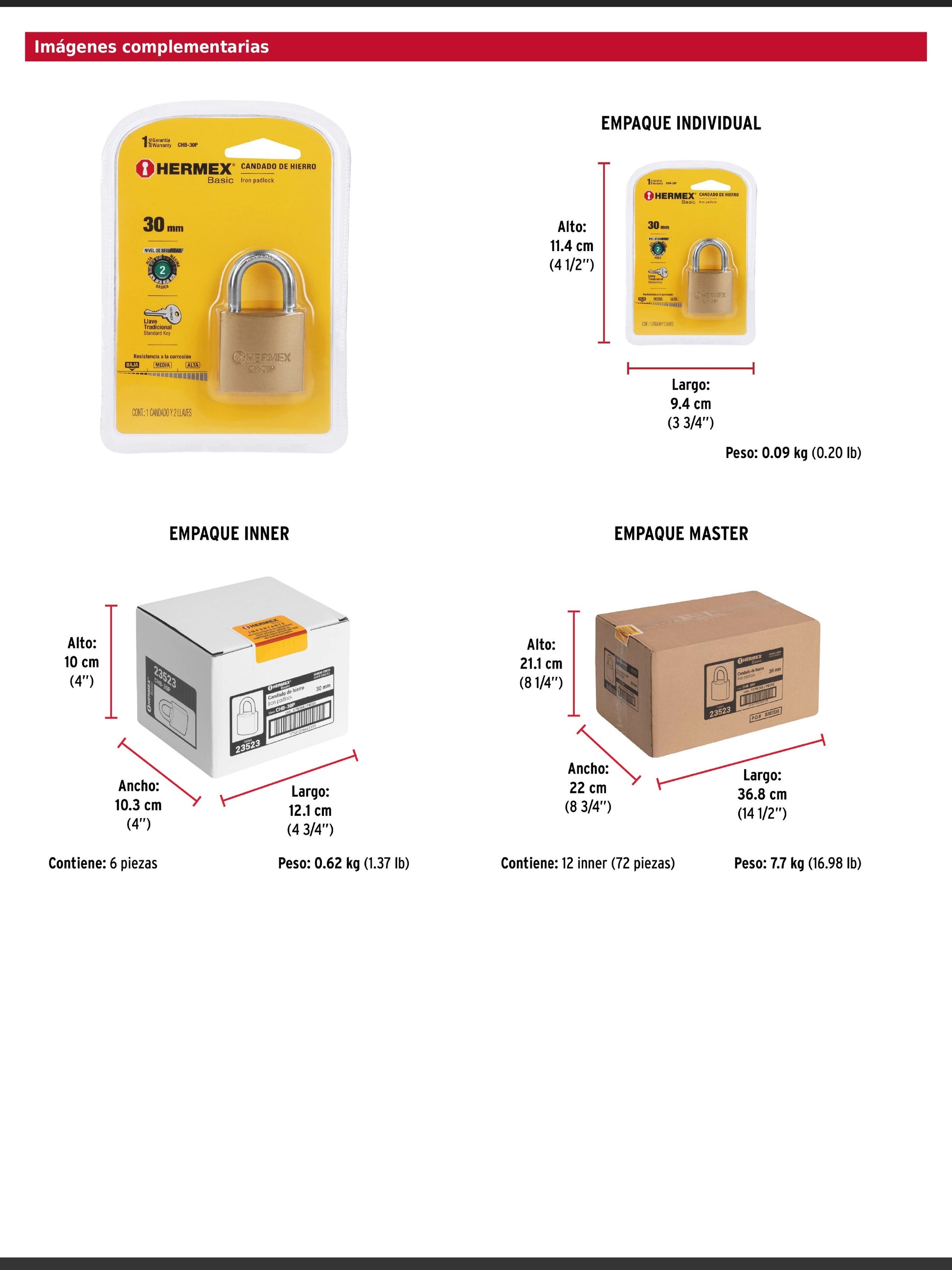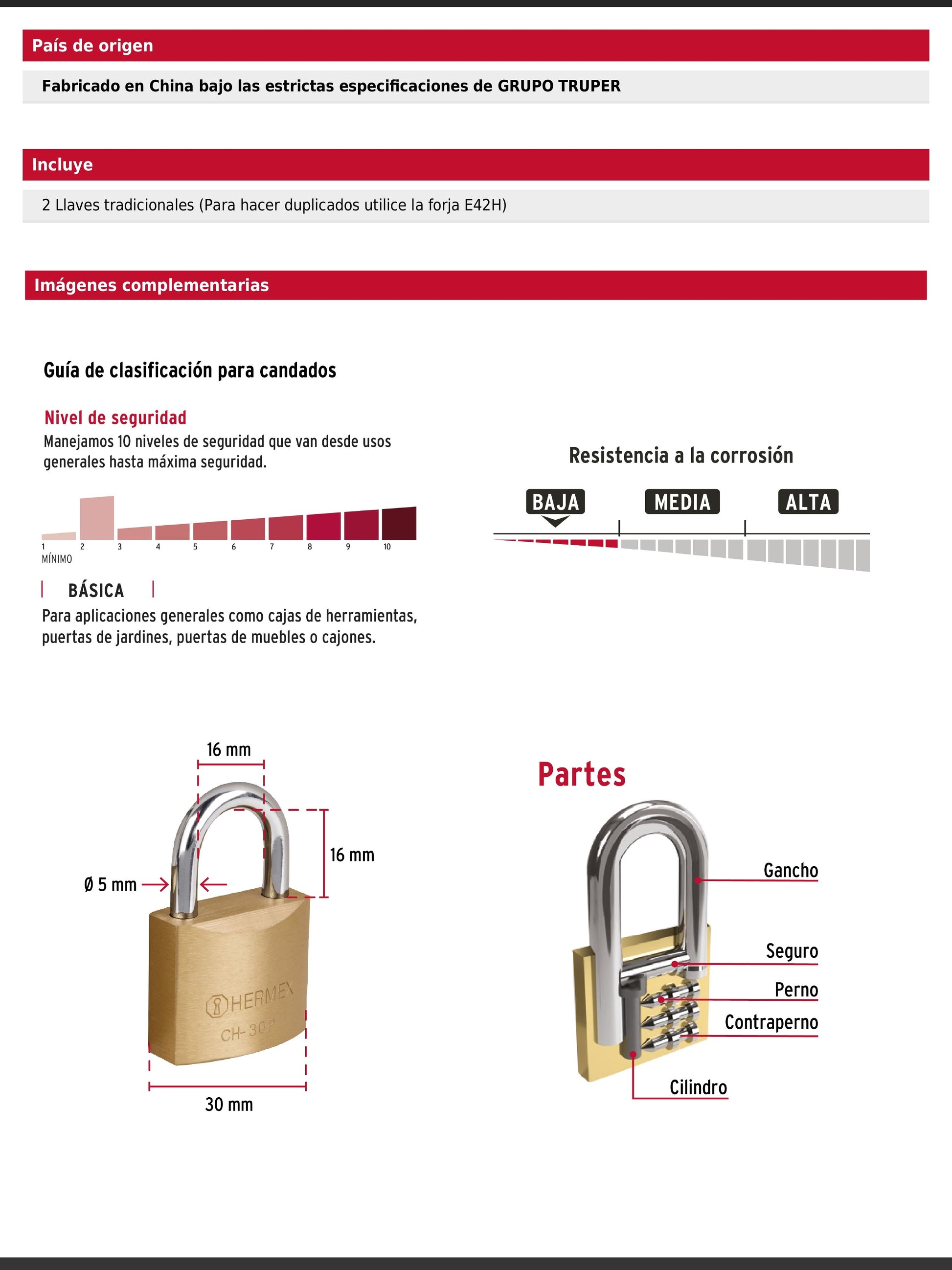 Candado de hierro con acabado latón y gancho corto de acero cromado, diseñado para un nivel de seguridad básica. Cuenta con un cilindro de latón sólido con 4 pines y seguro tipo perno estándar que ofrecen mayor resistencia a robos. Su mecanismo interno es resistente a la corrosión e incluye 2 llaves tradicionales. Se presenta en empaque individual tipo blíster.