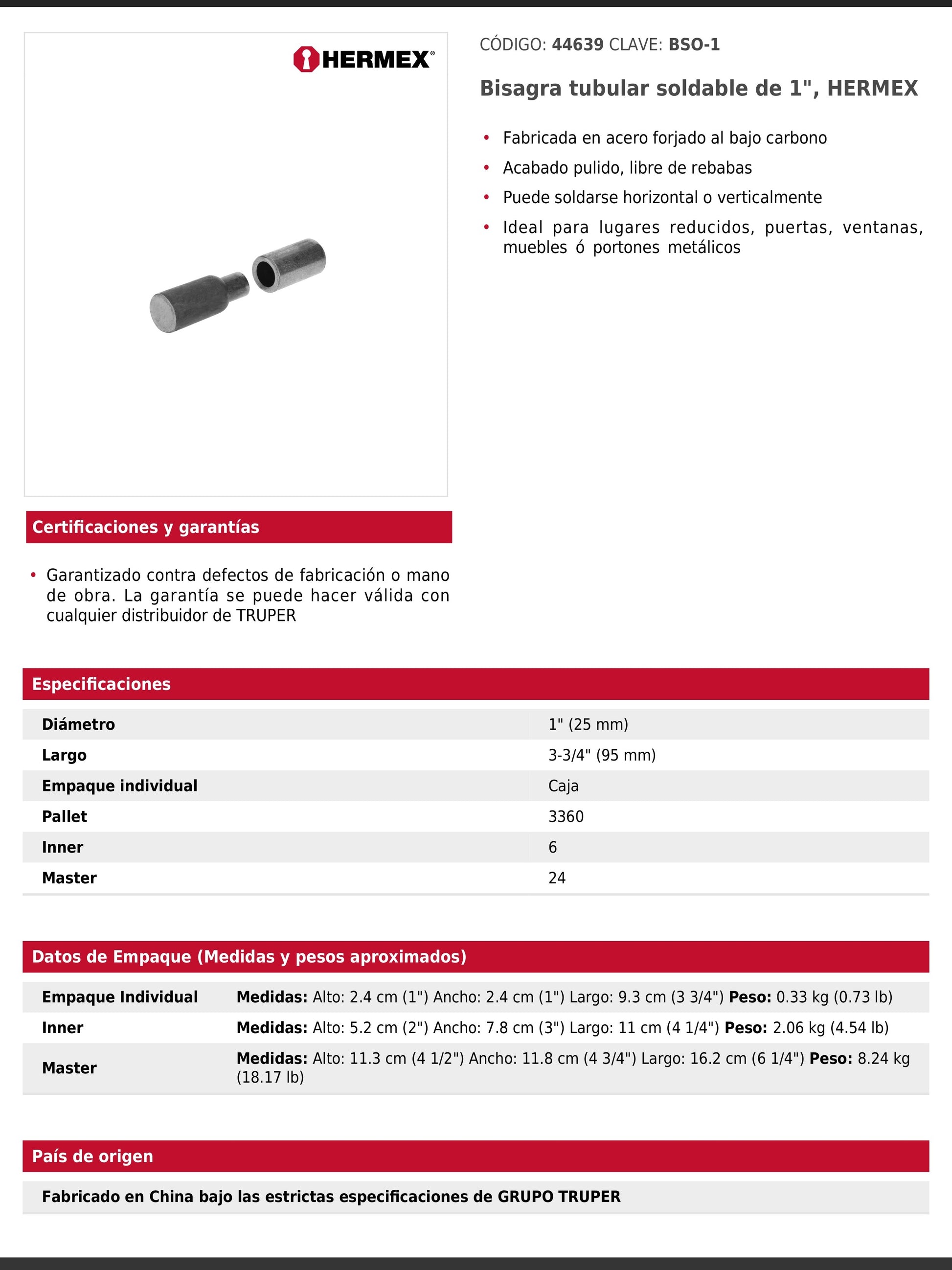 - Fabricado en China bajo especificaciones de Grupo Truper.