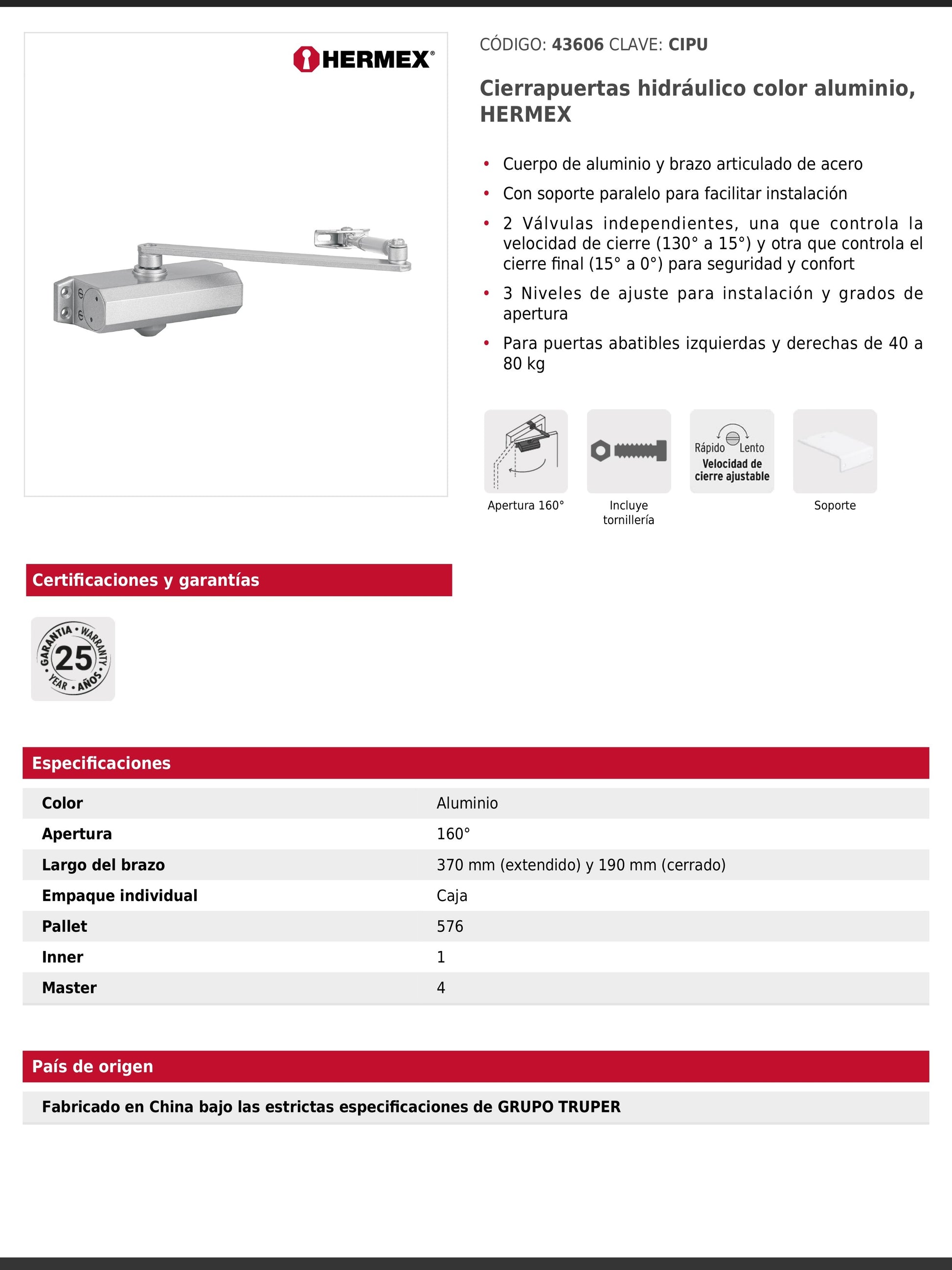 - Fabricado en China bajo especificaciones de Grupo Truper.