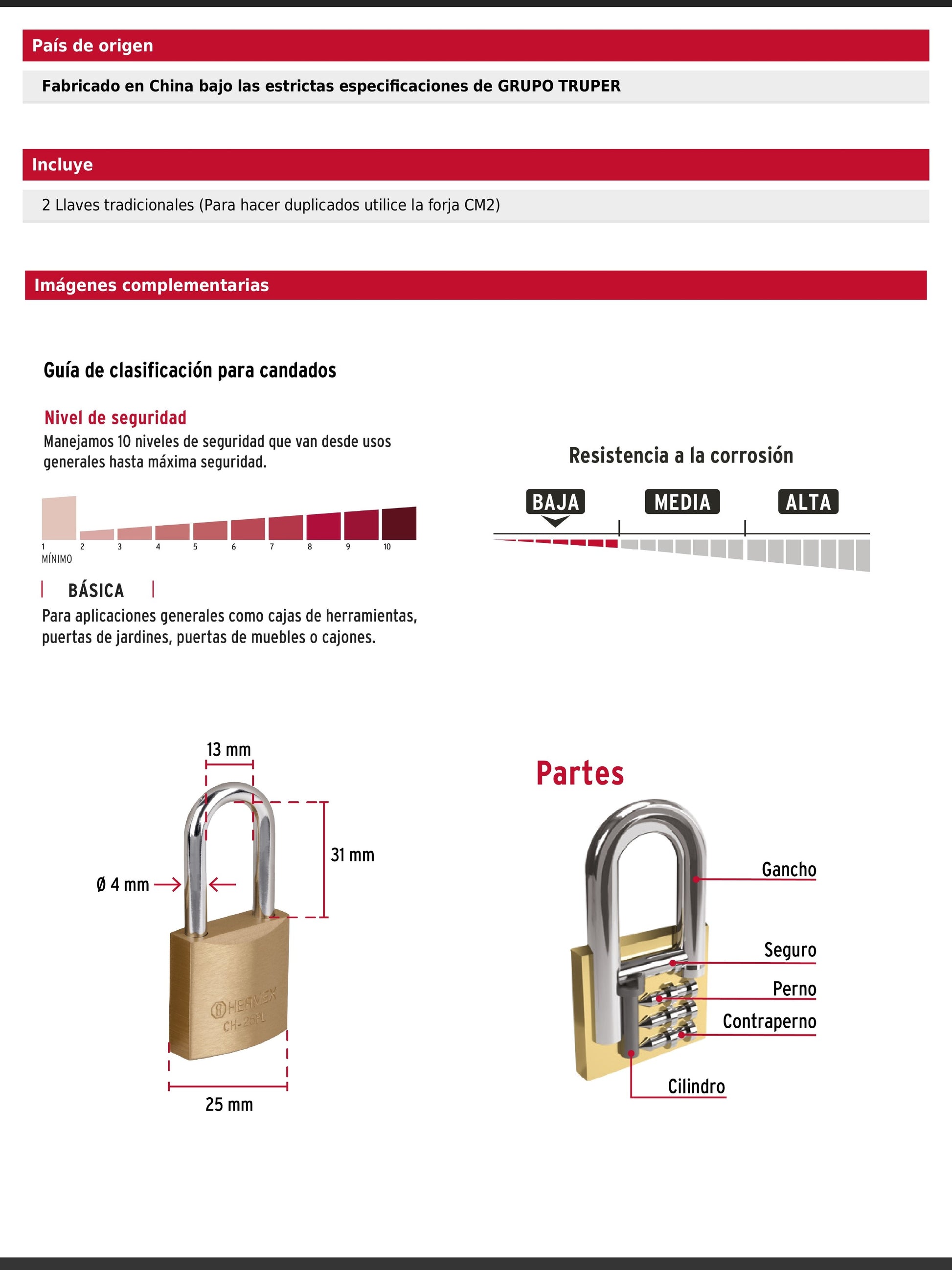 - Fabricado en China bajo especificaciones de Grupo Truper.
